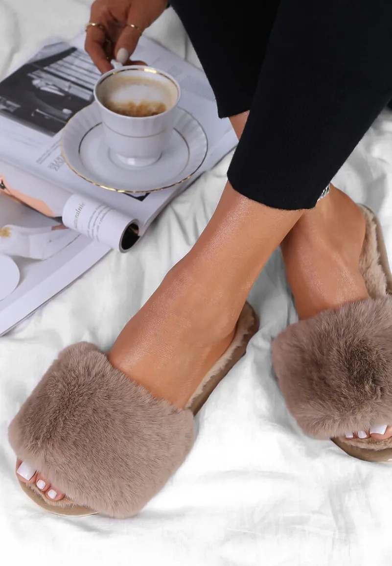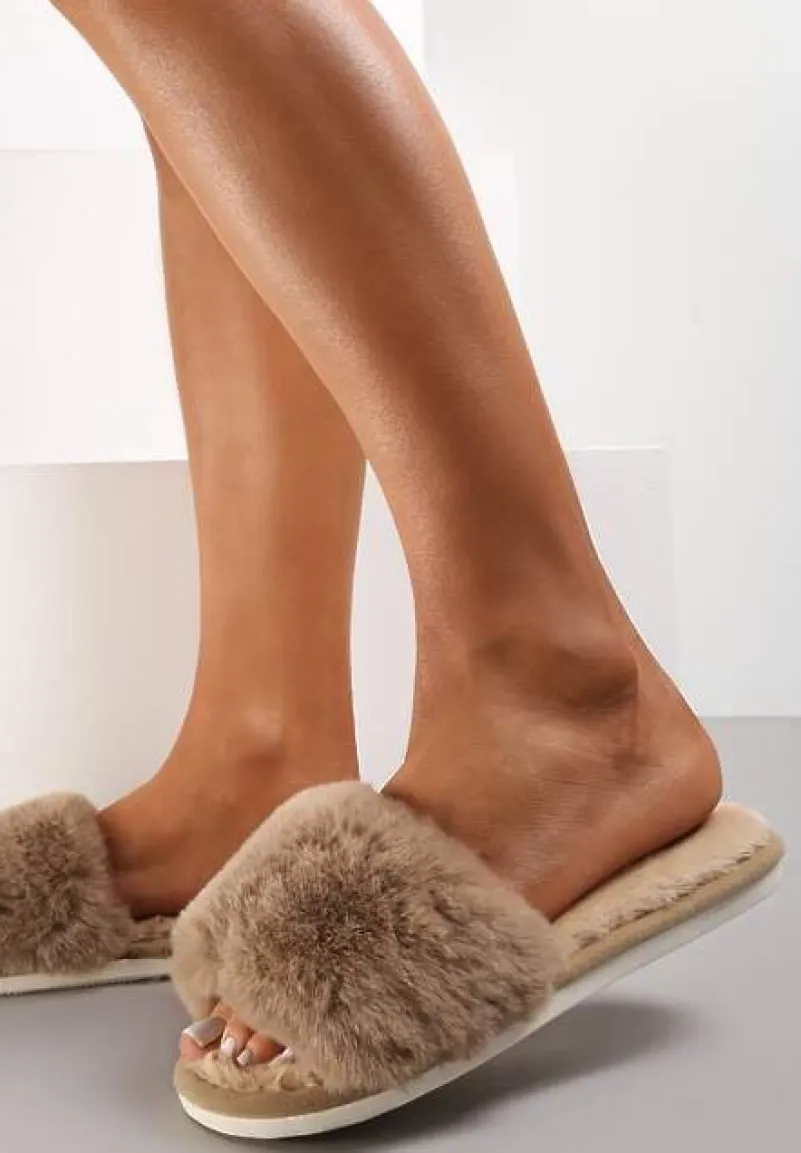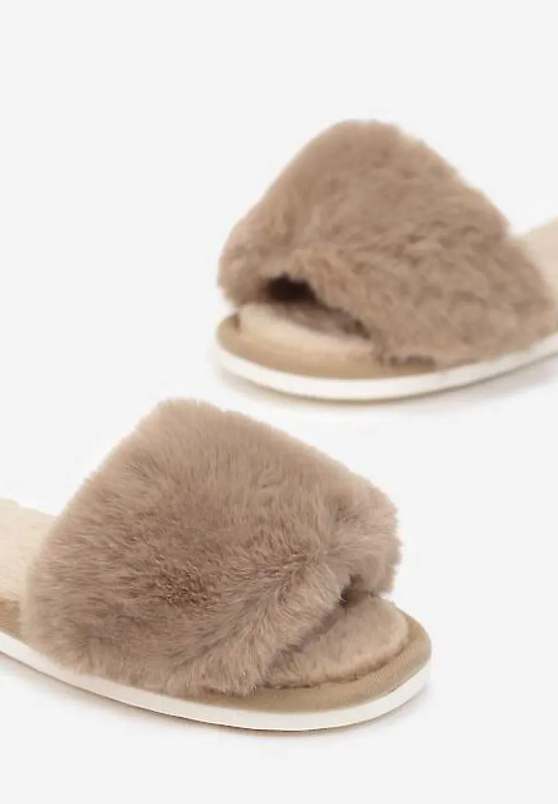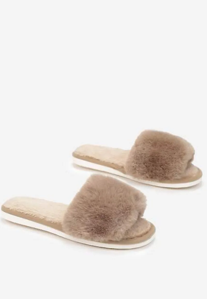 Kapcie Iphandras z okrągłym, otwartym noskiem. Z szerokim, futrzanym paskiem. Osadzone na płaskiej, gumowej podeszwie. Wsuwane, w całości wykonane z imitacji futerka. Kapcie Iphandras to oryginalny model, w sam raz dla miłośniczek ciepła i komfortu!