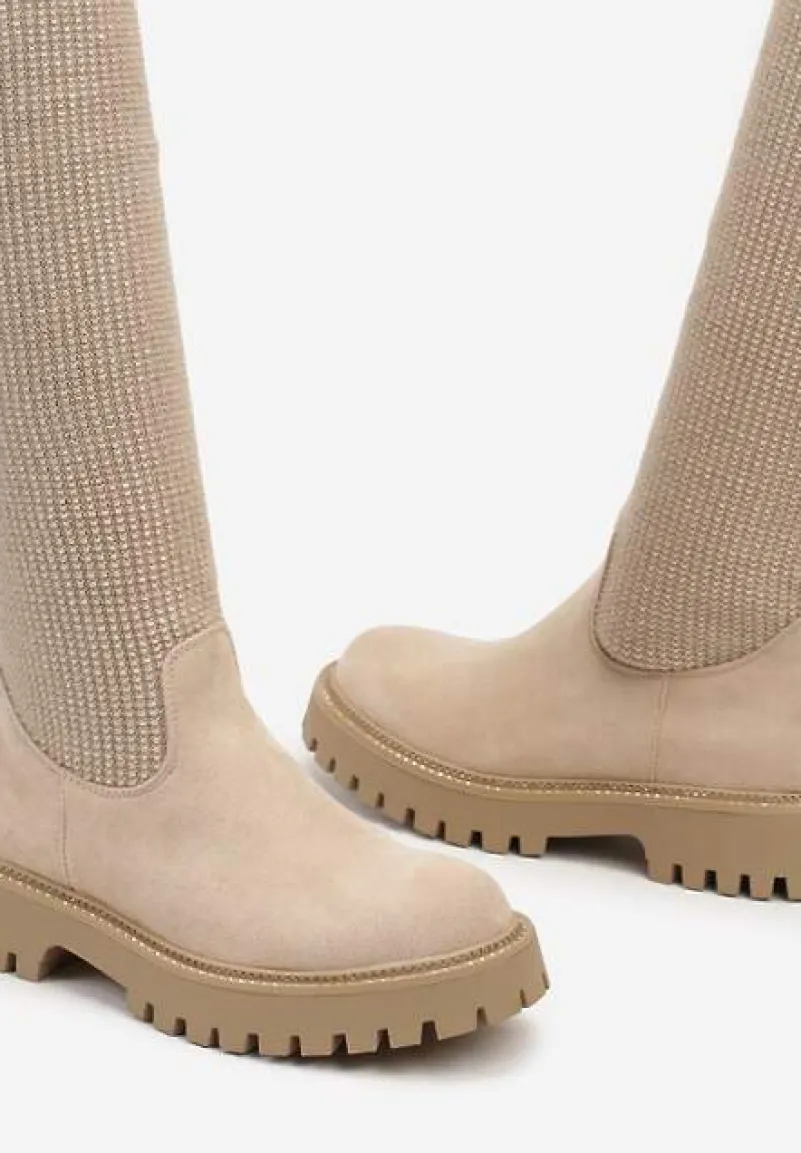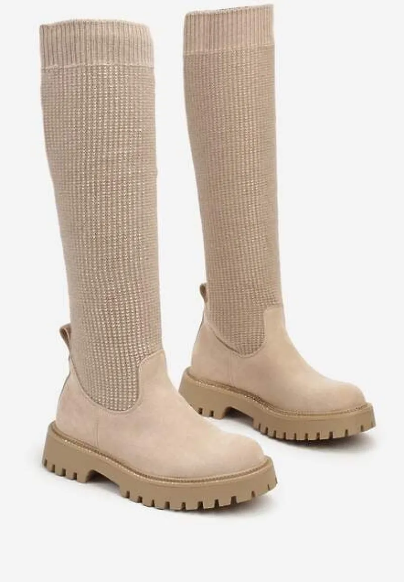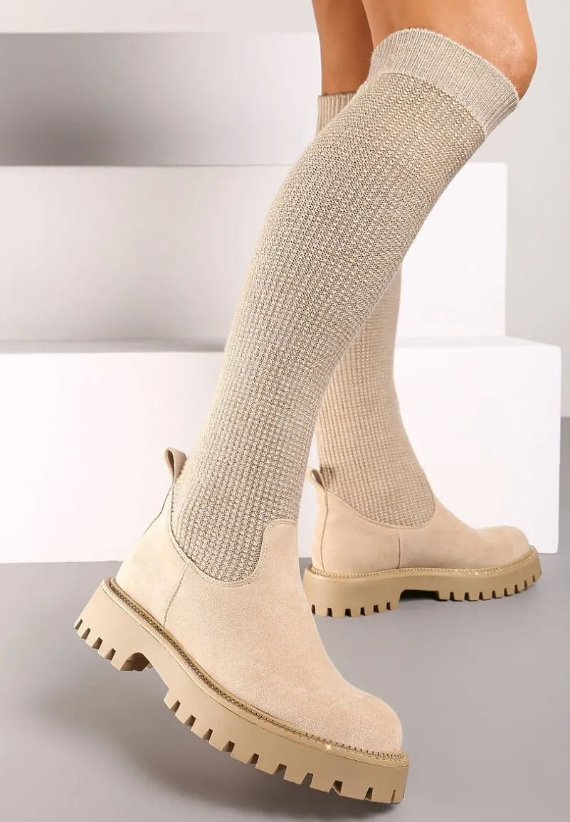 Kozaki Lerivara na platformie to kwintesencja stylu. Charakterystyczna, skarpetkowa cholewka gwarantuje dopasowanie. Kozaki Lerivara ubarwiają codzienne outfit’y dzięki eleganckim cyrkoniami, które dodadzą blasku zarówno w przypadku codziennego, miejskiego stroju z modnymi jeansami, jak i wyrazistym akcentem do wieczorowego looku z dzianinową sukienką.