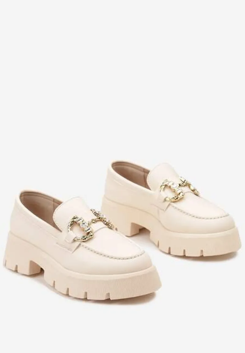 Mokasyny z Grubą Podeszwą to absolutny must-have dla dziewczyn, które cenią sobie połączenie klasyki z nowoczesnym twistem. Masywny obcas gwarantuje stabilność kroku. Zaokrąglony nosek to klasyka, która nigdy nie wychodzi z mody, a ozdobna klamra dodaje elegancji. Idealne na przejściowe sezony, sprawdzą się zarówno w casualowych, jak i bardziej formalnych zestawach. Wyobraź sobie je w towarzystwie wyrazistych, mom jeans i minimalistycznego t-shirtu – casualowy look gotowy! Dodaj do nich dopasowane spodnie z wysokim stanem i białą koszulę – klasa i szyk w jednym.