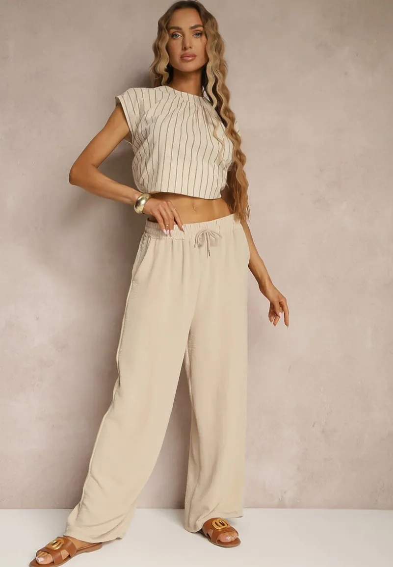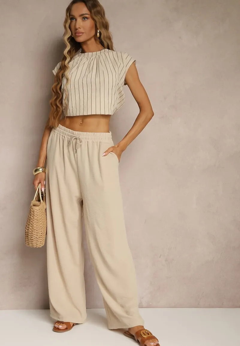 Spodnie High Waist Raveann ze sznurkiem w talii i prostą nogawką to modny i wygodny wybór, który podkreśli sylwetkę i zapewni wygodę noszenia. Model wyposażony jest w elastyczną gumkę w pasie oraz wsuwane kieszenie. Świetnie sprawdzi się na co dzień ze sneakersami i T-shirtem lub na spotkaniu ze znajomymi w połączeniu z espadrylami i koszulą.
