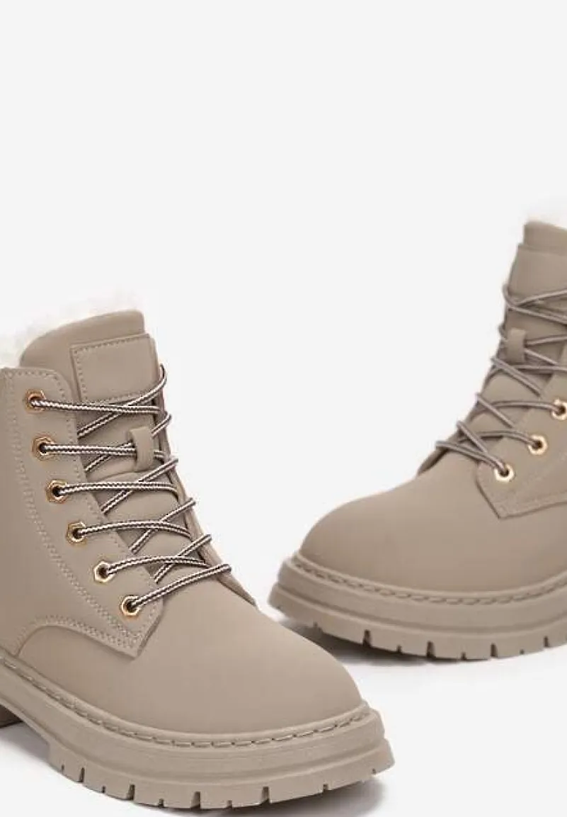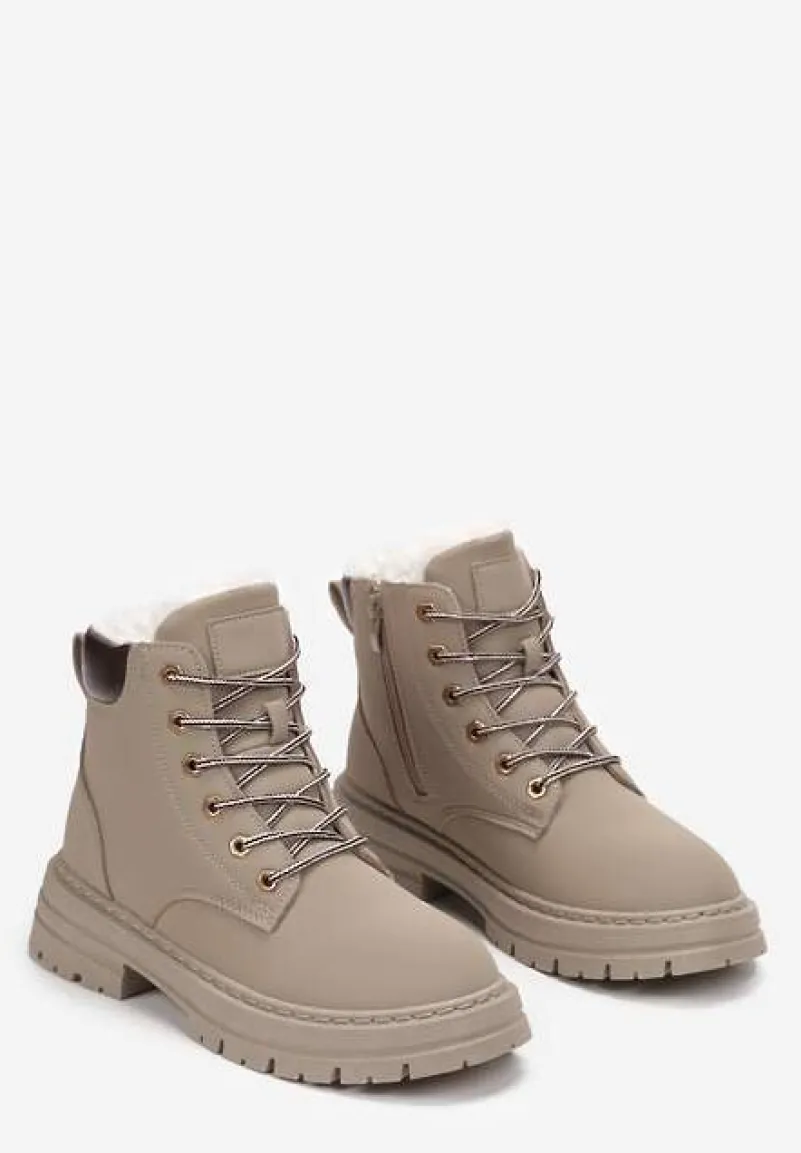 Traperki Janek to kwintesencja miejskiego stylu połączonego z funkcjonalnością na chłodne dni. Wykończone solidnym obcasem i płaską podeszwą, zapewniają stabilność i komfort noszenia. Idealnie skomponują się ze zwiewną sukienką i oversize’owym płaszczem, tworząc niebanalny kontrast na wieczorne wyjście. Świetnie sprawdzą się także z jeansami i wełnianym swetrem na co dzień. Złote oczka sznurowadeł dodają im szyku, a futerkowa wyściółka gwarantuje ciepło nawet w mroźne dni. Buty posiadają praktyczne zapięcie na suwak ułatwiające zakładanie. Musisz je mieć!