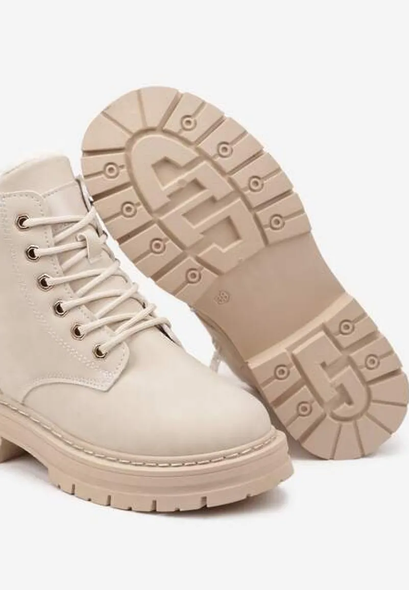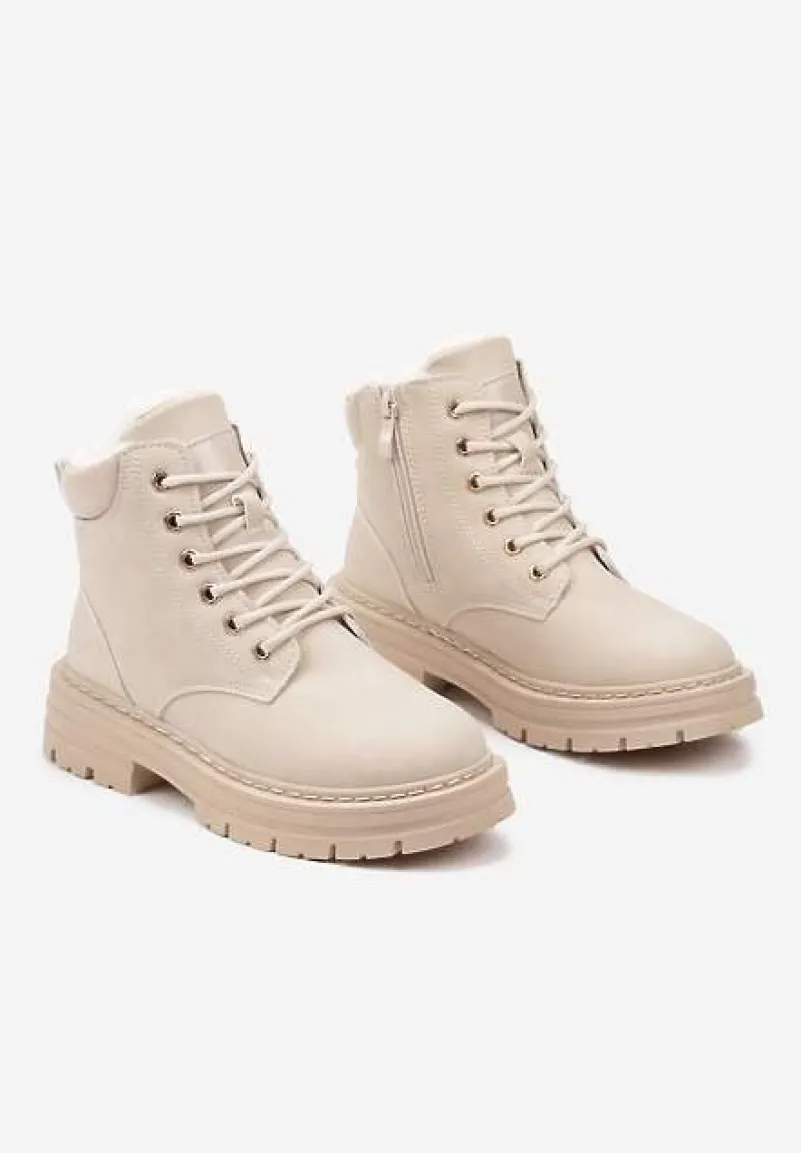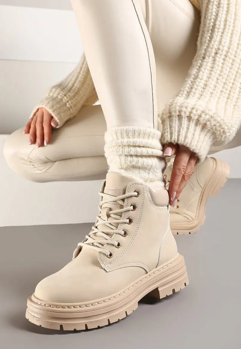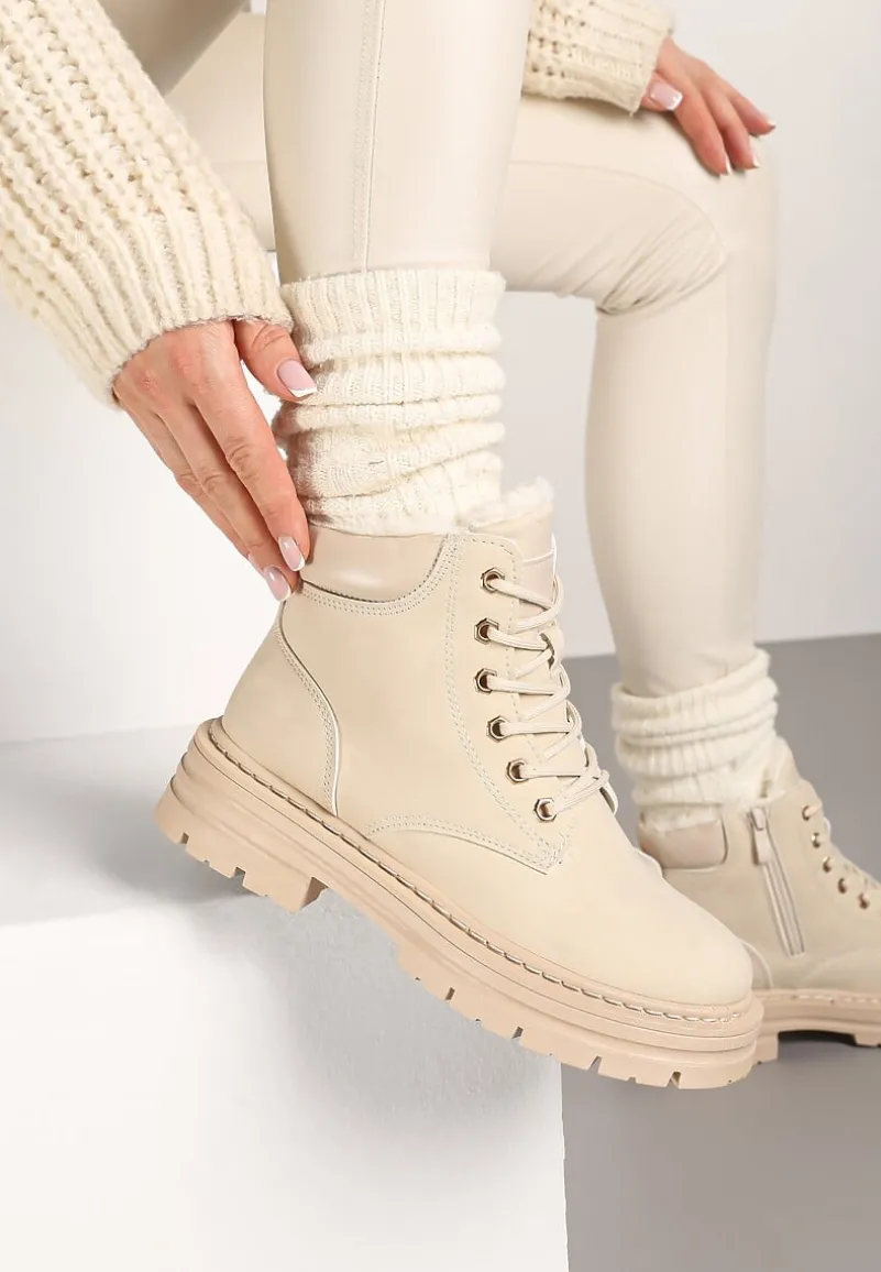 Traperki Toriga to kwintesencja stylu połączonego z funkcjonalnością. Tłoczona podeszwa zapewnia stabilność, a płaski obcas gwarantuje komfort noszenia. Futrzana wyściółka sprawdzi się w chłodne dni, a zapięcie na suwak ułatwi zakładanie. Zaokrąglone noski i solidne sznurowanie to gwarancja modnego wyglądu i praktyczności, a uniwersalny design sprawia, że traperki świetnie komponują się zarówno z jeansami i oversizowym swetrem na codzienne wyjścia, jak i ze skórzaną kurtką dla rockowego sznytu podczas wieczornych spotkań. Zaleca się wybór większego rozmiaru.