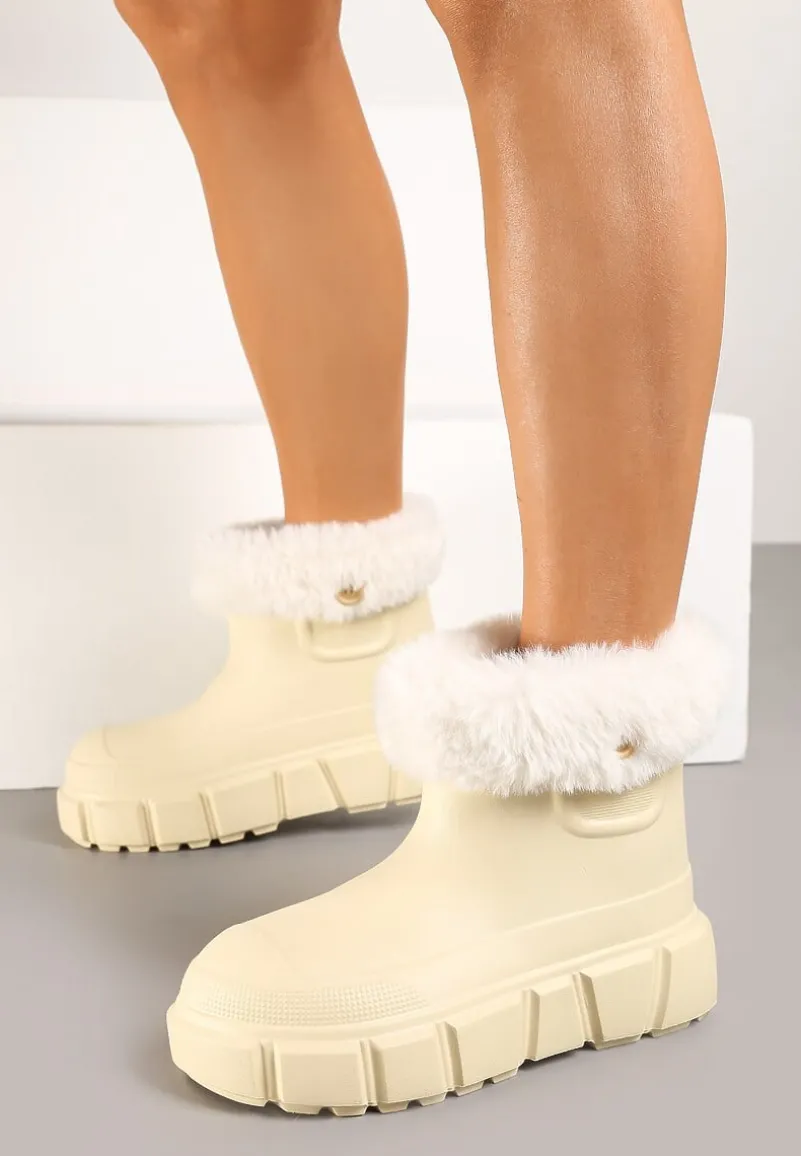 Wsuwane Śniegowce Tarvia z odpinanym futerkiem to połączenie stylu i funkcjonalności. Zrobione na podeszwie z masywnym obcasem, idealnie sprawdzą się w chłodniejsze dni. Eleganckie zdobienia dodają im wyjątkowego charakteru. Wybierz je na wypad za miasto z jeansami i swetrem lub zestaw ze spódnicą midi i futrzanym płaszczem na wieczorne wyjście.