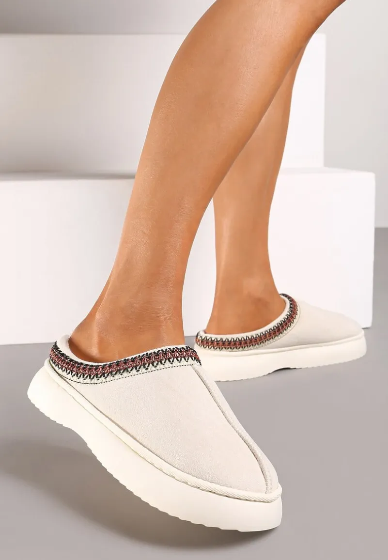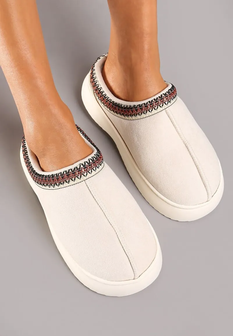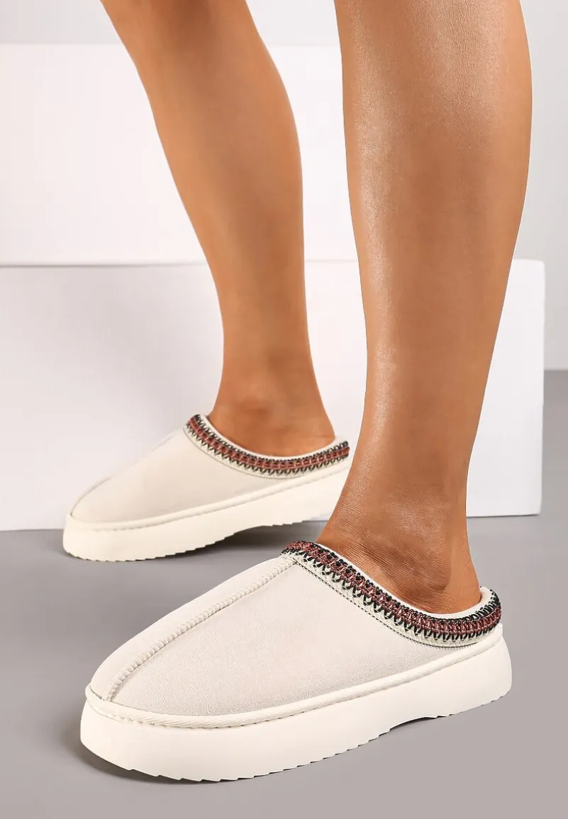 Wybierz Kapcie na Platformie Rerisya, aby dodać swojemu codziennemu strojowi odrobiny wygody w stylowym wydaniu. Ich subtelny haft sprawia, że zyskują unikalny charakter, a solidna platforma zapewnia stabilność i wygodę, a ocieplane wnętrze sprawdza się w chłodniejsze dni. Zaokrąglony nosek i brak zbędnych zapięć to gwarancja praktyczności i uniwersalności. Możesz je nosić do luźnych, bawełnianych spodni i ulubionego swetra, tworząc relaksujący, ale modny zestaw, a także do bardziej formalnych, materiałowych spodni, gdy potrzebujesz dodać strojowi nonszalancji.