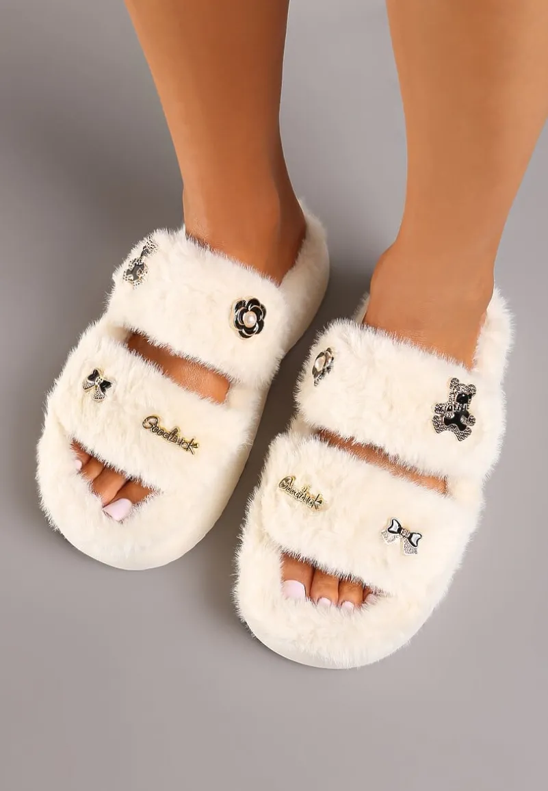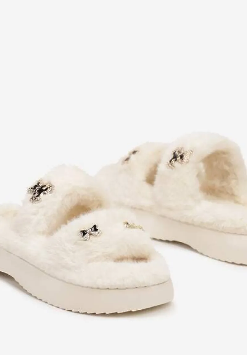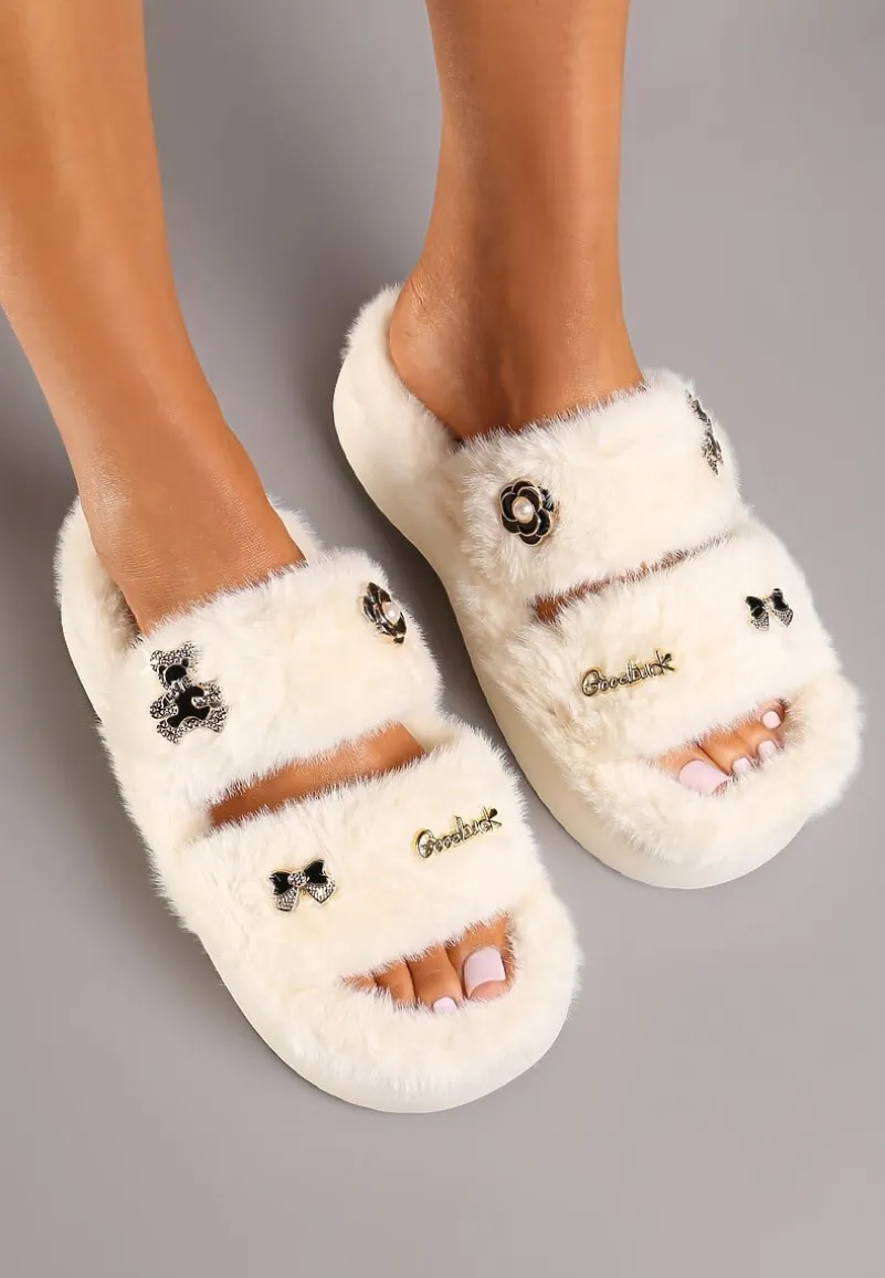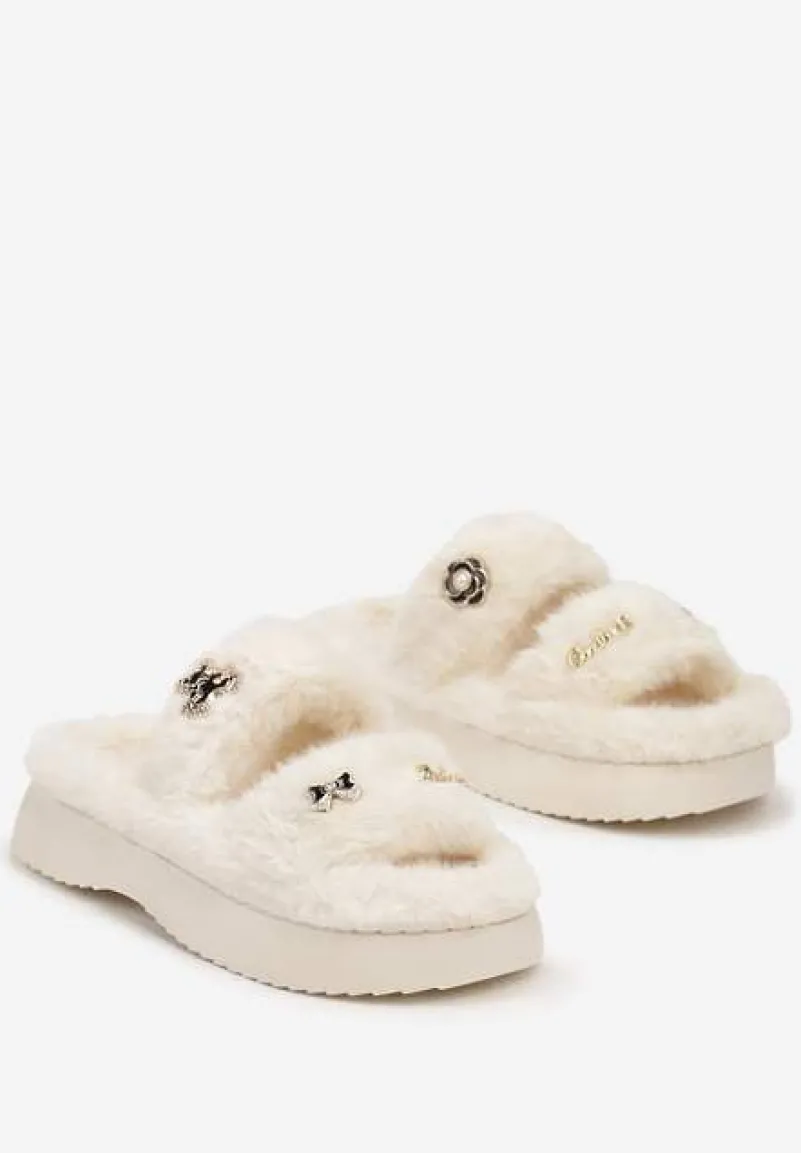 Kapcie Riamaya to synonim domowego szyku. Wykonane z futerkowego materiału, zapewniają niebywały komfort dzięki grubej płaskiej podeszwie. Otwarty nosek buta to synonim swobody, a brak zapięć równa się szybkiemu i łatwemu wsuwaniu. Bez względu na sezon, te kapcie ozdobione aplikacjami 3D dodadzą blasku twoim domowym stylizacjom. Połącz je z luźnymi dresami dla looku, który łączy w sobie komfort i nowoczesność, lub zestaw z eleganckim szlafrokiem, aby poczuć się wyjątkowo nawet podczas leniwego popołudnia.