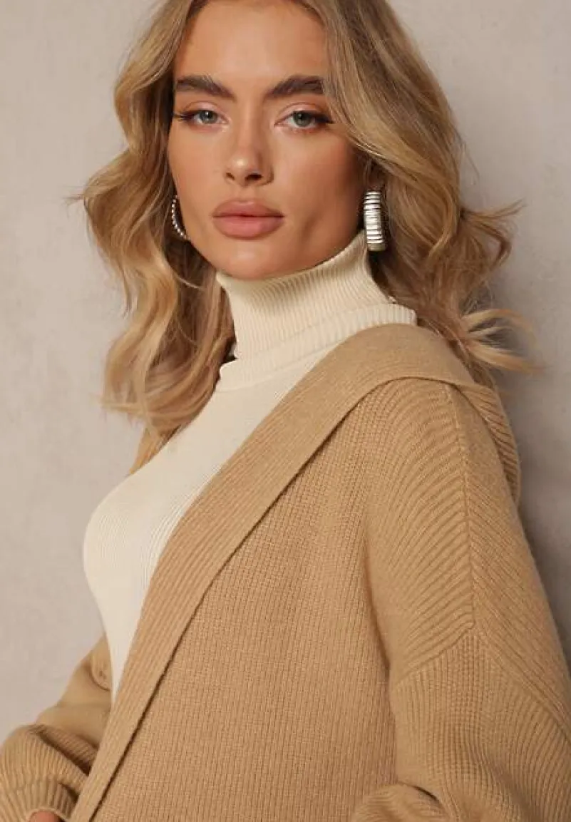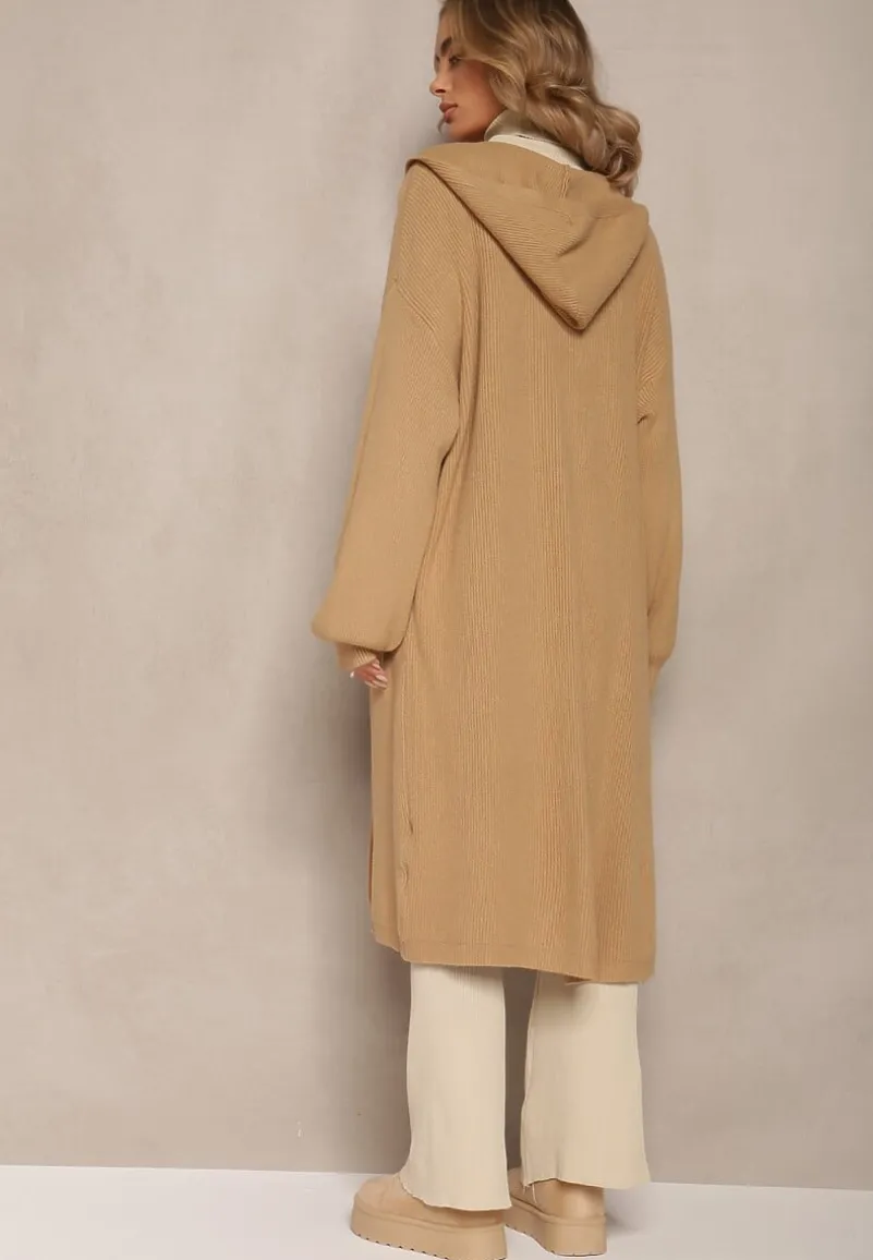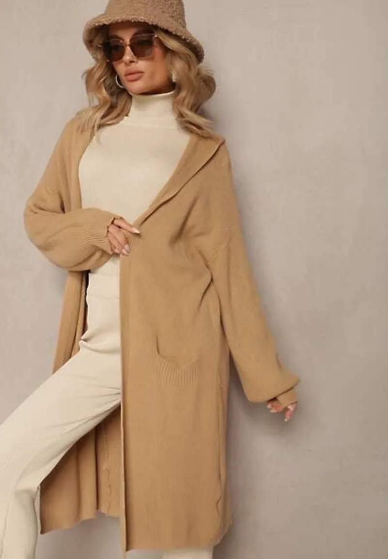 Kardigan Colise o niezapinanym, długim fasonie. Posiada kaptur oraz kieszenie.