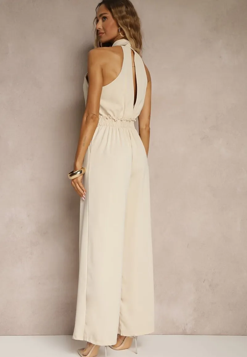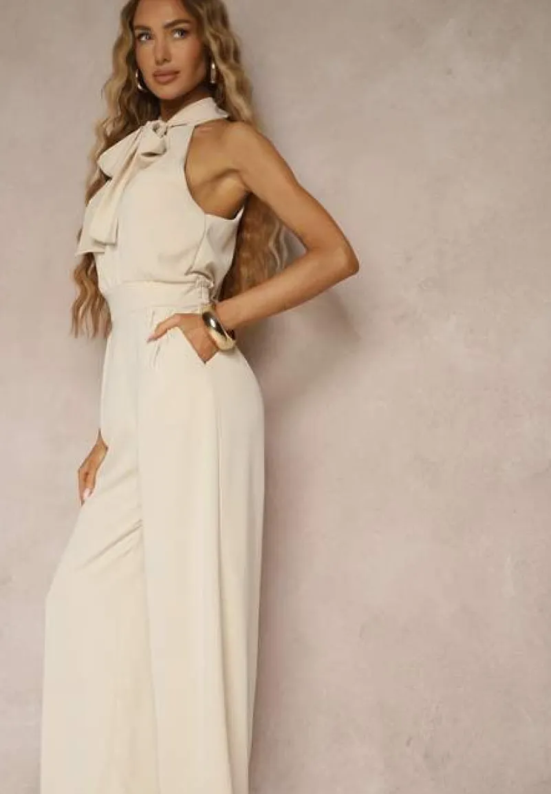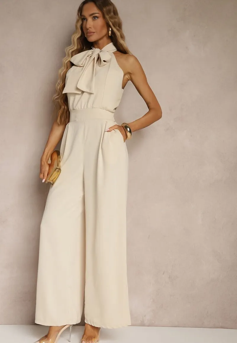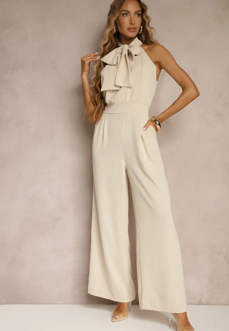 Beżowy Kombinezon Ozdobiony Kokardą Milireia