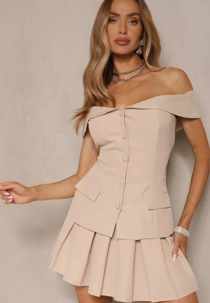 Komplet Bluzka Hiszpanka Zapinana na Guziki i Rozkloszowana Spódnica Saladriela to idealny wybór dla każdej modowej entuzjastki! Stylowy fason bluzki hiszpanki połączony z rozkloszowaną spódnicą podkreśla sylwetkę i dodaje lekkości. Subtelne detale, takie jak zapięcie na guziki oraz imitacja kieszenie sprawiają, że zestaw sprawdzi się zarówno na co dzień, w połączeniu ze sneakersami i ramoneską, jak i na wieczorne wyjścia, zestawiony ze szpilkami i delikatną biżuterią — efekt wow gwarantowany! Spódnica posiada zapięcie na suwak.