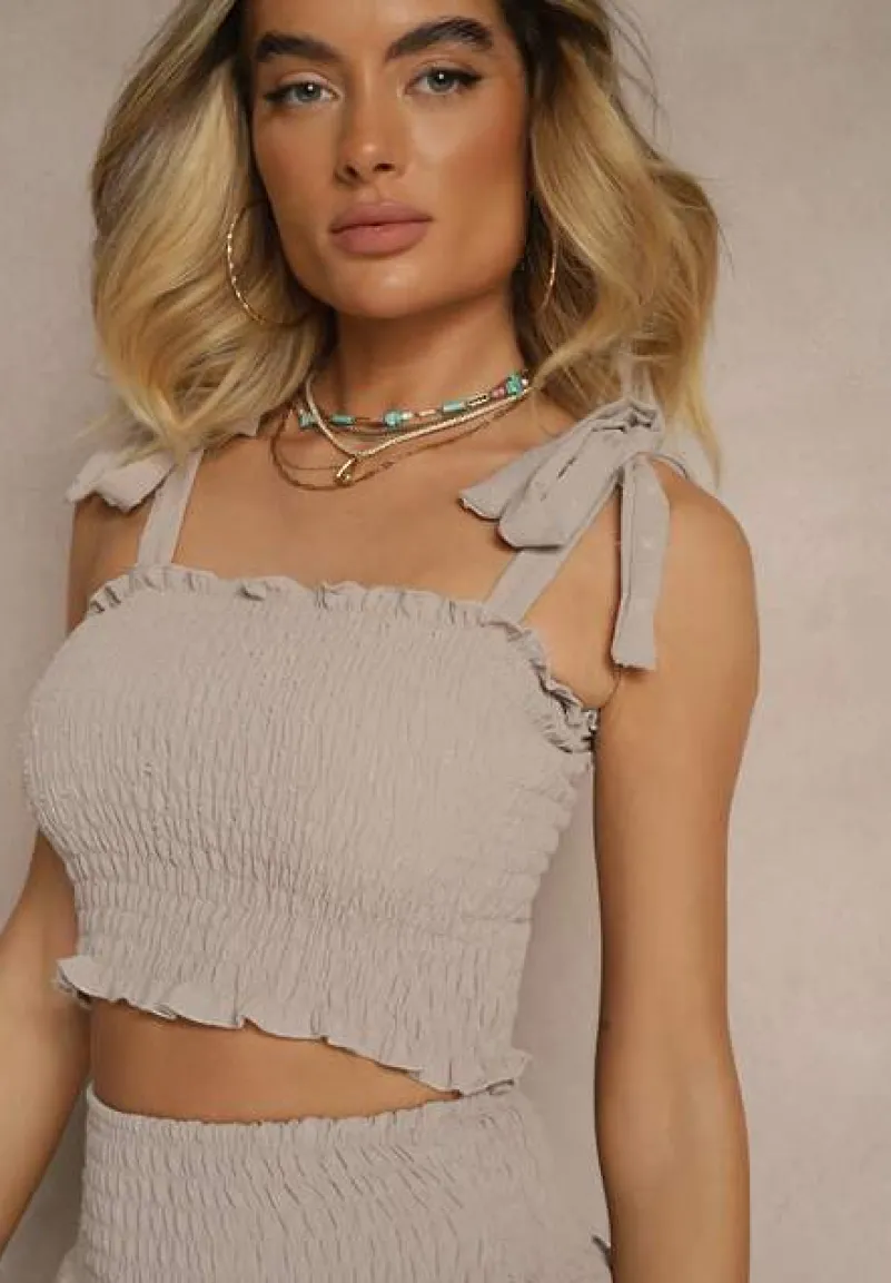 Odkryj zestaw Evianea, który łączy w sobie elegancję i wygodę! Dopasowany top z wiązaniem podkreśla sylwetkę, a rozkloszowana spódnica dodaje lekkości i swobody ruchów (posiada gumkę w talii, która rozciąga się do 27 cm). Komplet ten idealnie sprawdzi się w sezonie letnim, zarówno na co dzień, jak i podczas wieczornych wyjść. Stylizuj go z sandałami na obcasie i klasyczną torebką na elegancką kolację lub ze sneakersami i denimową kurtką na spotkanie z przyjaciółmi – możliwości są nieskończone!