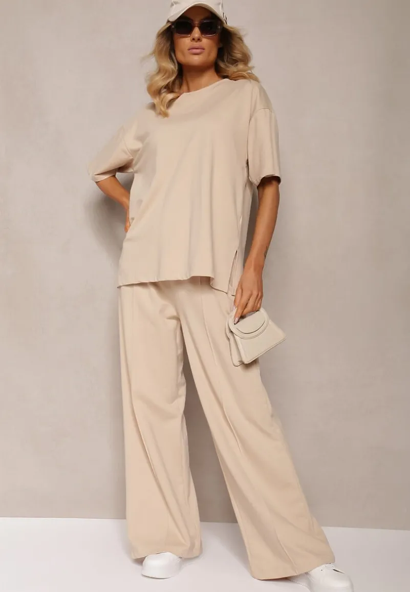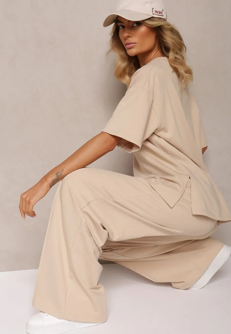 Stwórz swoje niepowtarzalne kompozycje z Kompletem Vimarases, idealnym zarówno na co dzień, jak i na specjalne okazje. Jego luźny krój zapewnia swobodę ruchów, a bawełniana tkanina dostosowuje się do kształtu ciała. Komplet składa się z bluzki z oryginalnymi rozcięciami, które subtelnie przełamują prostotę fasonu, oraz szerokich spodni na gumce, które są synonimem casualowego szyk. Możesz je zestawiać z mokasynami i shopper bag na luźniejsze wyjścia, albo z eleganckimi szpilkami i kopertówką podczas wieczornych eventów.
