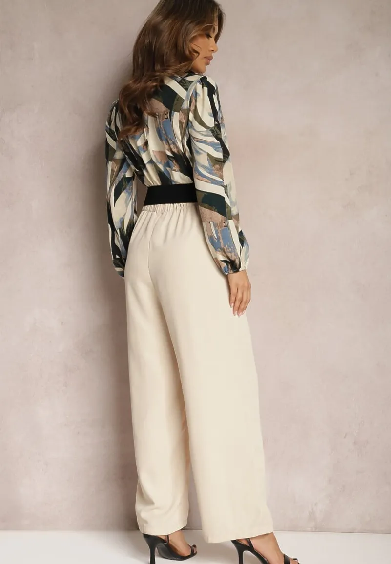 Beżowy Kopertowy Kombinezon z Paskiem i Szerokimi Spodniami Nittama