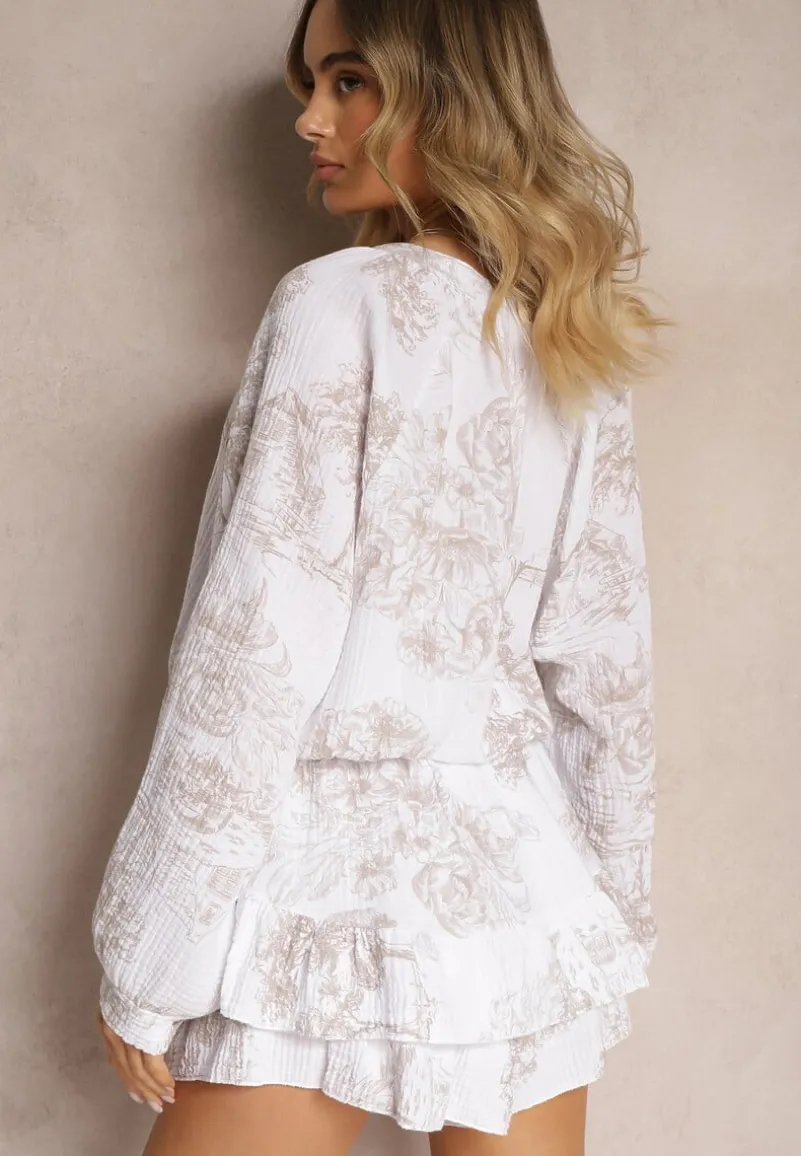Beżowy Muślinowy Kombinezon z Bawełny z Ozdobnym Wiązaniem Vimariana