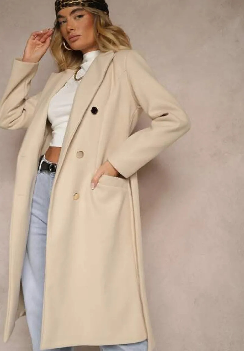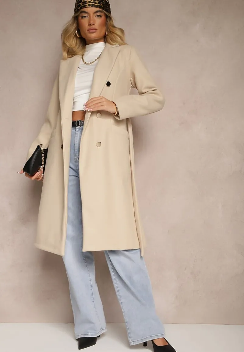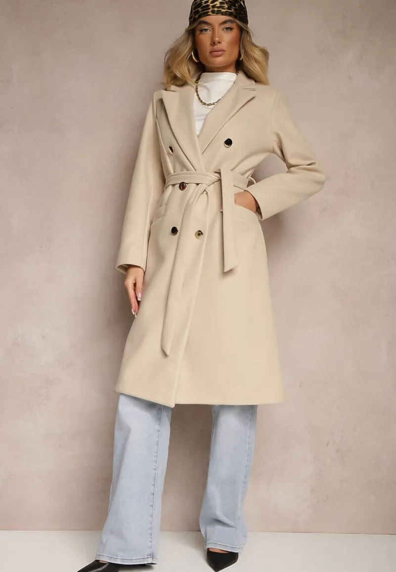 Płaszcz Eunamia z paskiem wiązanym w talii, przepuszczonym przez szlufki. Dwurzędowy, zapinany na modne, duże guziki. Model ocieplany, z długimi rękawami i klasycznym kołnierzem. Kieszenie wsuwane, bez suwaka. Dwurzędowy płaszcz Eunamia wzbogaci Twoją jesienno-zimową szafę i będzie pasować do wielu stylizacji