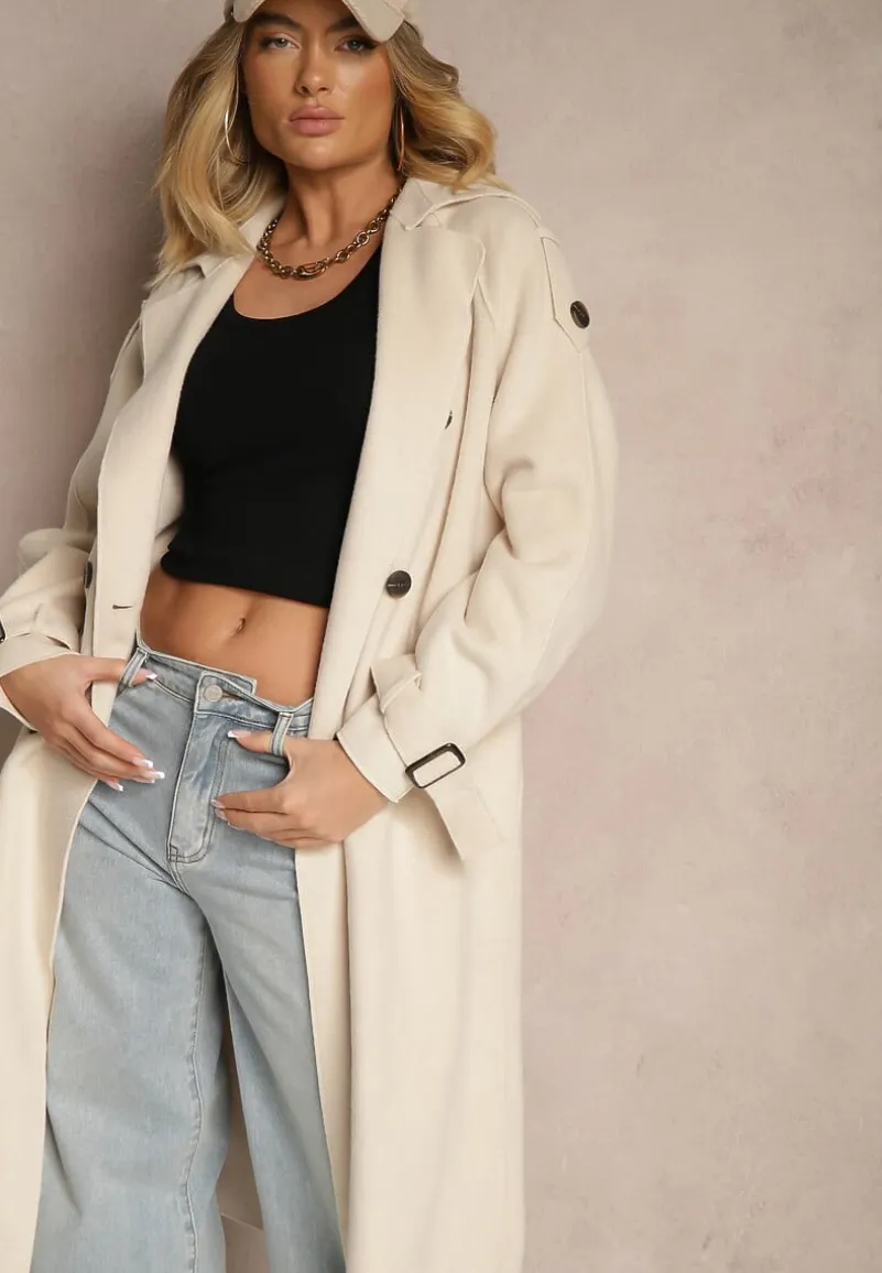 Płaszcz Nivela z dwurzędowym zapięciem na guziki to klasyk, który powinien znaleźć się w szafie każdej trendsetterki. Elegancki i ponadczasowy fason idealnie wpisuje się w sezonowe trendy, a długi rękaw oraz pas zapewniają styl, ale też funkcjonalność w chłodniejsze dni. Ten uniwersalny model świetnie sprawdzi się zarówno jako dopełnienie casualowych stylizacji z jeansami i trampkami, jak i bardziej formalnego looku w zestawieniu z eleganckimi botkami oraz minimalistyczną torebką. Stwórz swoją własną, modną historię z płaszczem Nivela, który podkreśli Twoją silną osobowość i wyjątkowy styl.