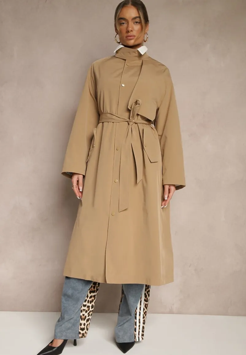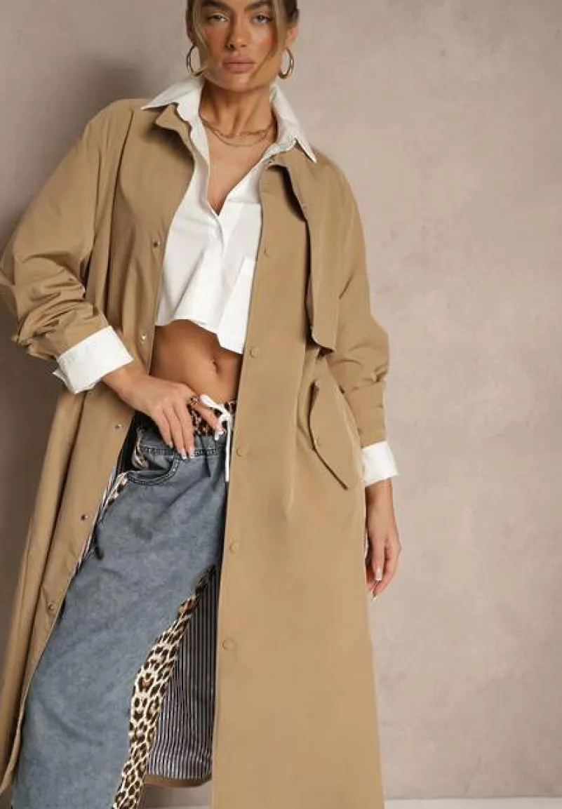 Płaszcz w Stylu Trencza Vintage z Asymetryczną Zakładką i Paskiem Davivellea to idealny wybór na każdą porę roku. Jego luźny fason z modnymi detalami sprawia, że poczujesz się dobrze zarówno w biurze, jak i na weekendowych spacerach jako stylowa dama. Po bokach kieszenie z klapami zapinanymi na napy. Elegancka asymetryczna zakładka doskonale dopełni zarówno casualowy zestaw z jeansami i botkami, jak i bardziej formalną stylizację z sukienką i szpilkami. Ten płaszcz jest nie tylko funkcjonalny, ale także efektowny, podkreślając Twoją indywidualność i modowy charakter.