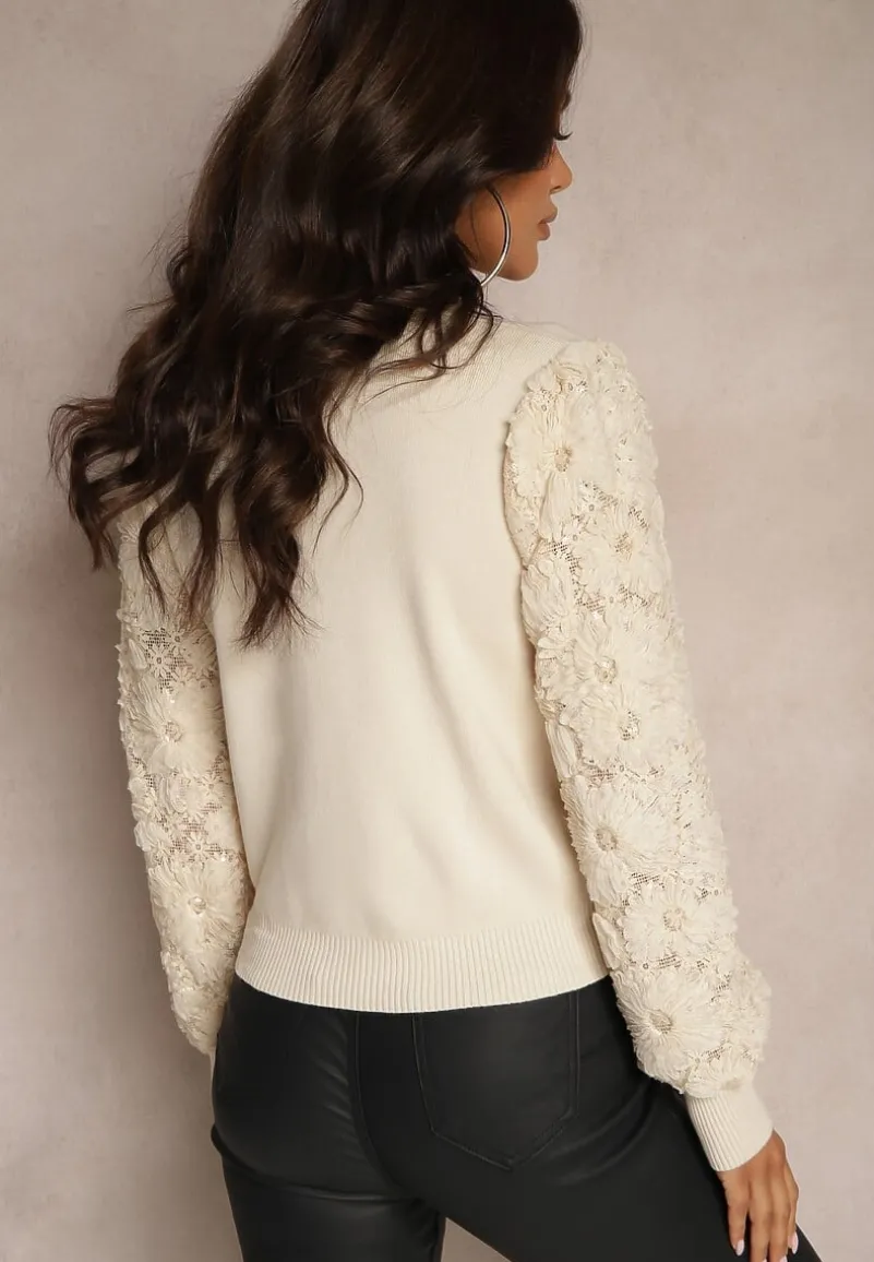 Odkryj wyjątkowy sweter Tilitana, który wzbogaci Twoją garderobę o nutę szyku i nonszalancji! Dzięki ozdobnym rękawom z koronki z cekinami poczujesz się stylowo bez względu na okazję. Zaokrąglony dekolt oraz subtelnie dopasowany fason idealnie podkreślają sylwetkę, a detale w postaci koronki dodają lekkości i elegancji. Zestaw go z ulubionymi jeansami i mokasynami na co dzień lub postaw na ołówkową spódnicę i szpilki na wieczorne wyjście — efekt wow gwarantowany!