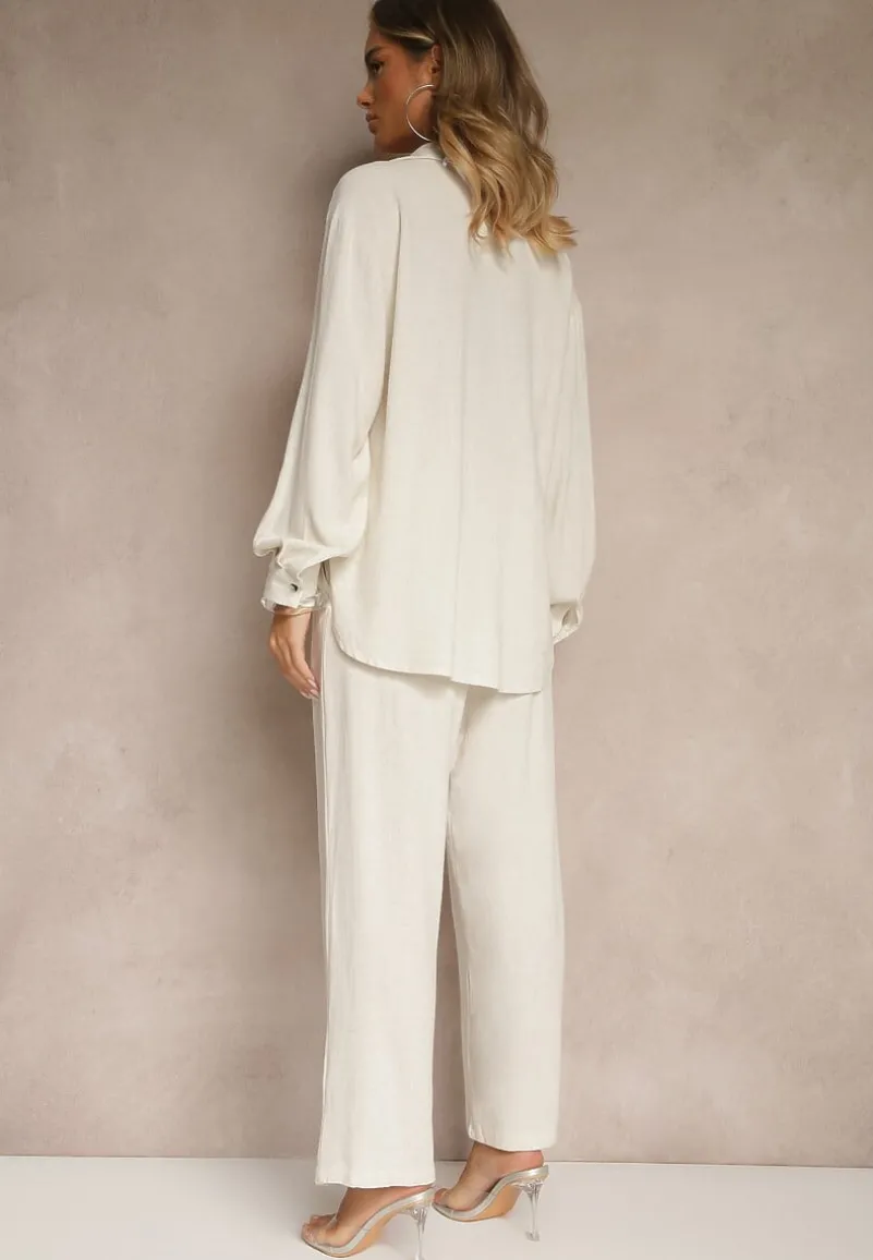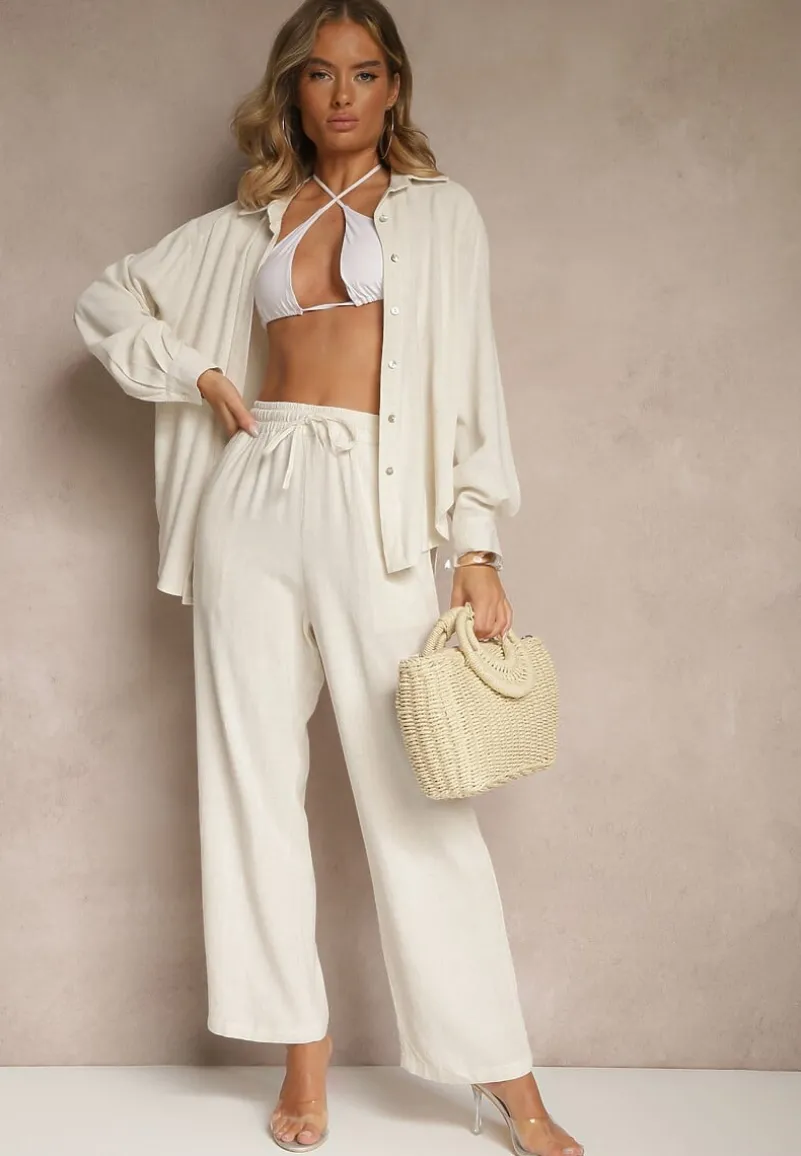 Komplet Hanorwen to prawdziwa esencja stylu i wygody. Wiskozowo-lniana tkanina zapewnia komfort noszenia i swobodę ruchów, dzięki czemu zestaw sprawdzi się idealnie w sezonie wiosenno-letnim. Luźna koszula o długich rękawach i szeroki krój spodni z gumką w pasie i wsuwanymi kieszeniami sprawiają, że ten zestaw będzie strzałem w dziesiątkę zarówno na co dzień, jak i na bardziej oficjalne okazje. W wersji casualowej postaw na połączenie ze sneakersami i dużą torbą na ramię, a na wieczór — z eleganckimi sandałkami i minimalistyczną biżuterią, by olśniewać swoim wyczuciem mody.