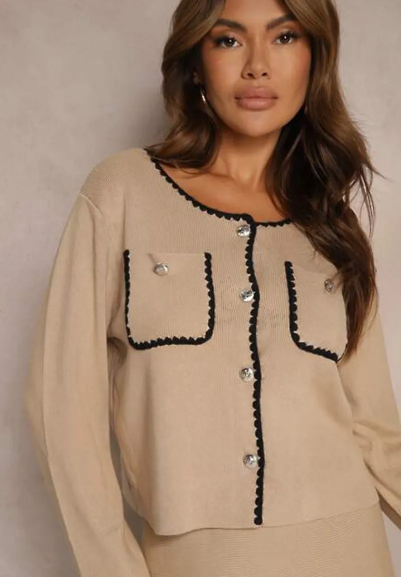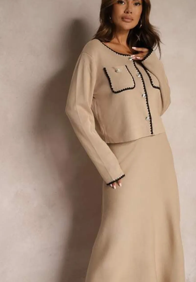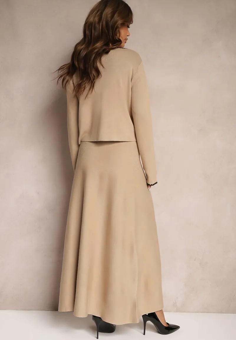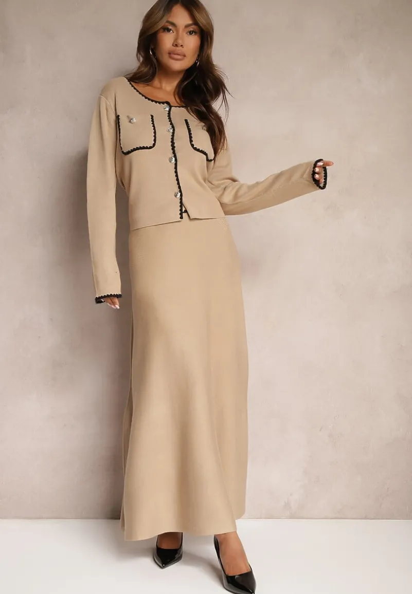 Komplet Veriiana to kwintesencja elegancji z nutą nowoczesności, idealny dla kobiety ceniącej styl. Rozkloszowana spódnica z elastycznym pasem doskonale dopasowuje się do sylwetki. Po rozciągnięciu się na max; S/M-50 cm. Rozpinany kardigan z długimi rękawami otula w chłodniejsze dni. Subtelne zdobienia i ponadczasowy fason zestawu doskonale sprawdzą się zarówno na co dzień, z balerinami i delikatną biżuterią, jak i na eleganckie wyjścia, gdzie dopełnisz go szpilkami i kopertówką.