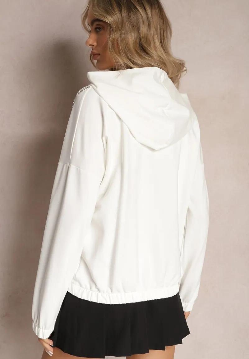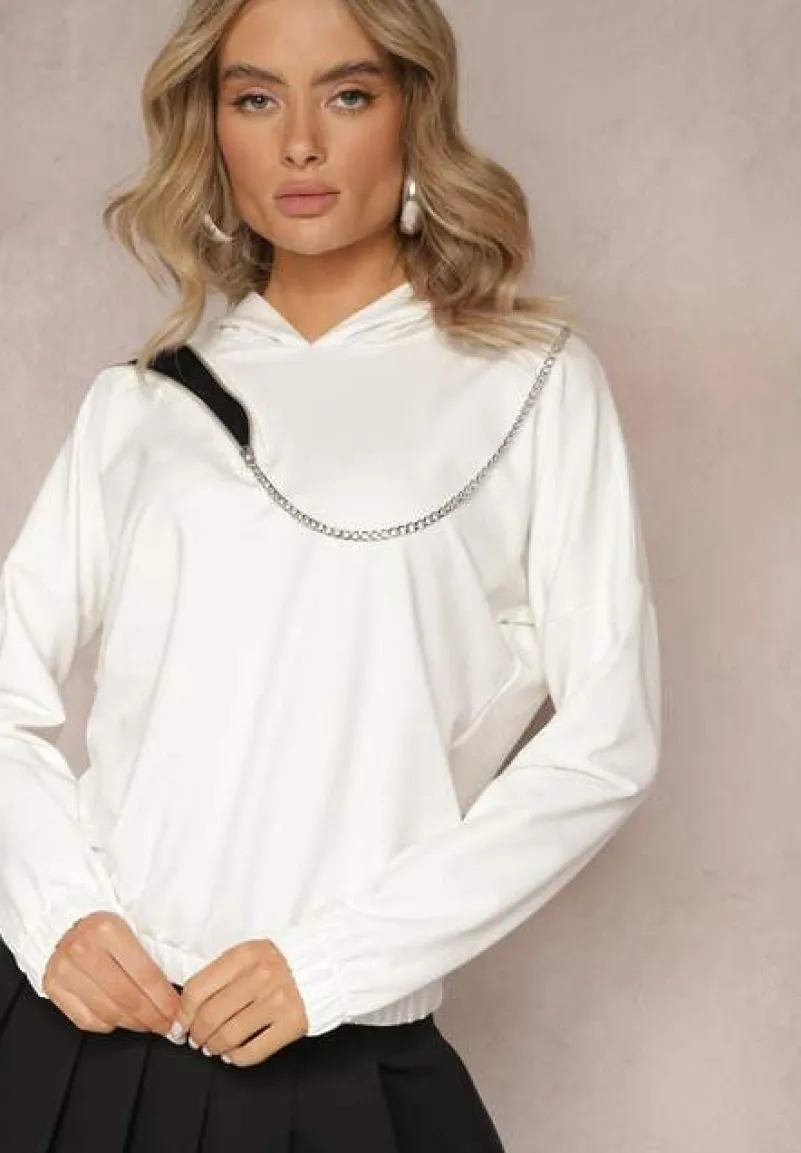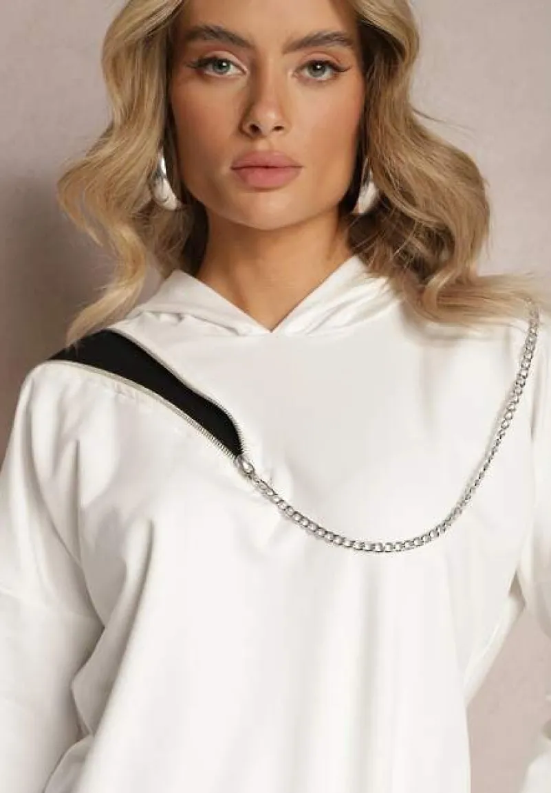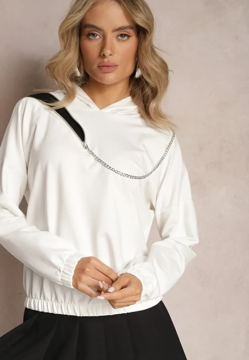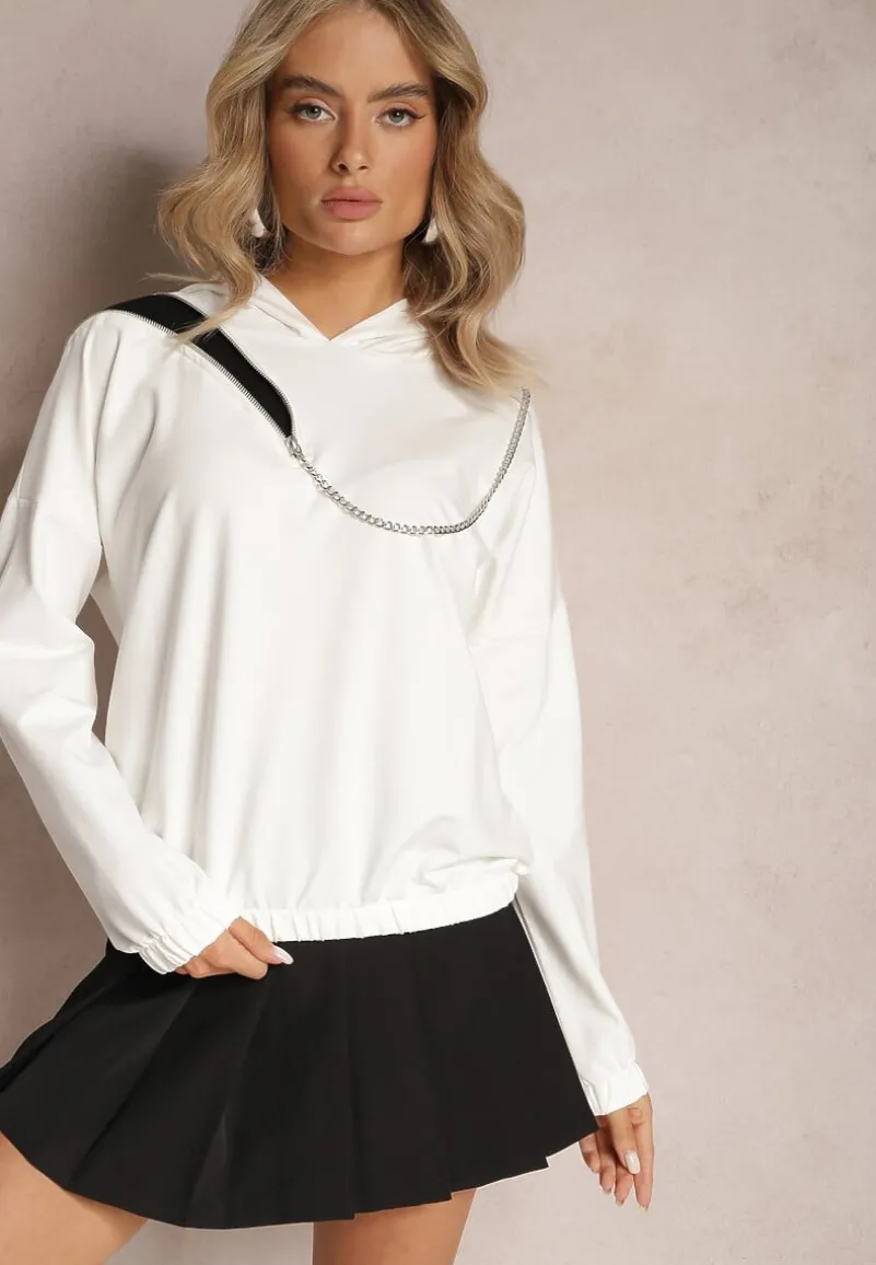 Bluza Lueur z kapturem wykonana z miękkiej bawełny. Ozdobiona łańcuszkiem oraz ozdobnym suwakiem odsłaniającym ramię. Będzie strzałem w dziesiątkę dla osób, które lubią wyjątkowe rozwiązania w modzie.
