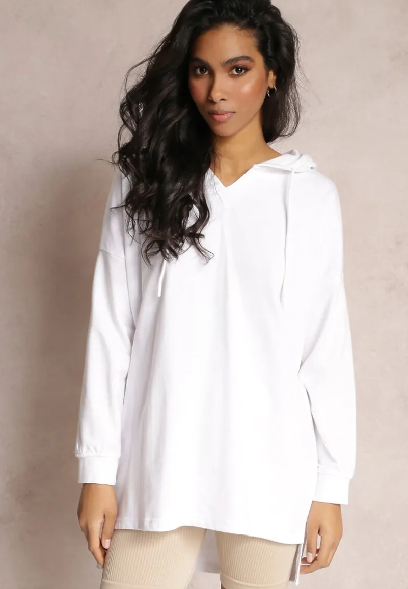 Bluza Kavita o asymetrycznym kroju i ściągaczami przy rękawach. Nierozpinana, zakładana przez głowę. Kaptur ściągany na sznurki. Z tyłu lekko dłuższa.