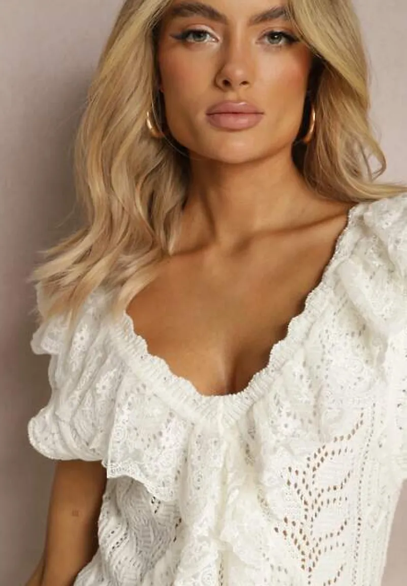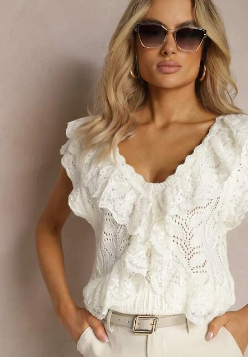 Ażurowa Bluzka Top Urcca – dzianinowy fason z wiskozy, wzbogacony o koronkowe falbanki to must have sezonu!
