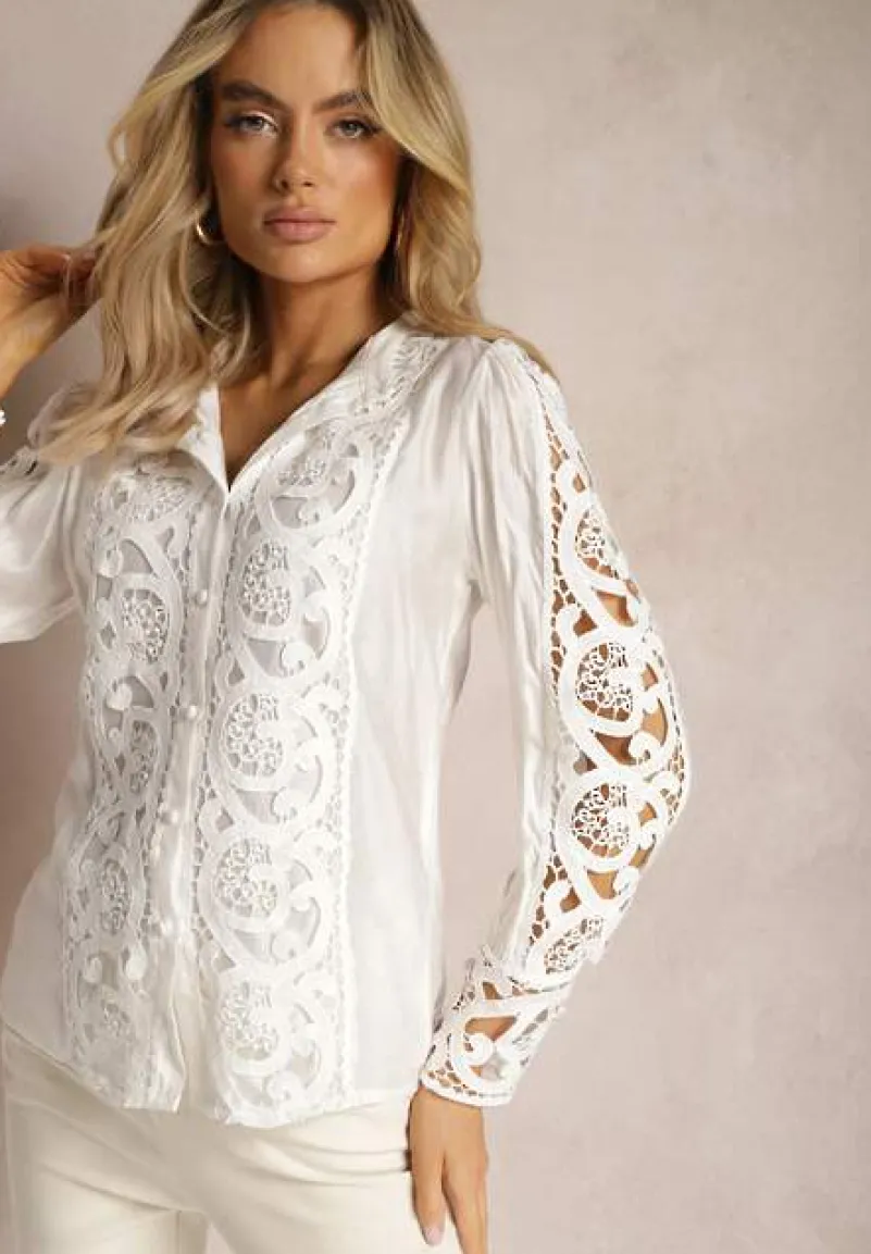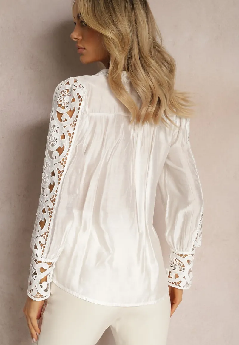 Ażurowa koszula Jirdima ze stójką w stylu vintage – stworzysz z nią wiele eleganckich setów!