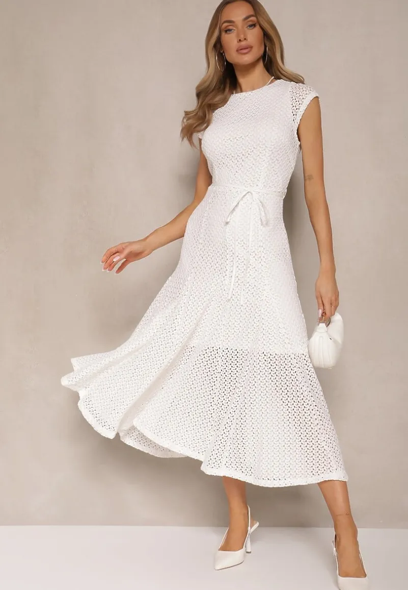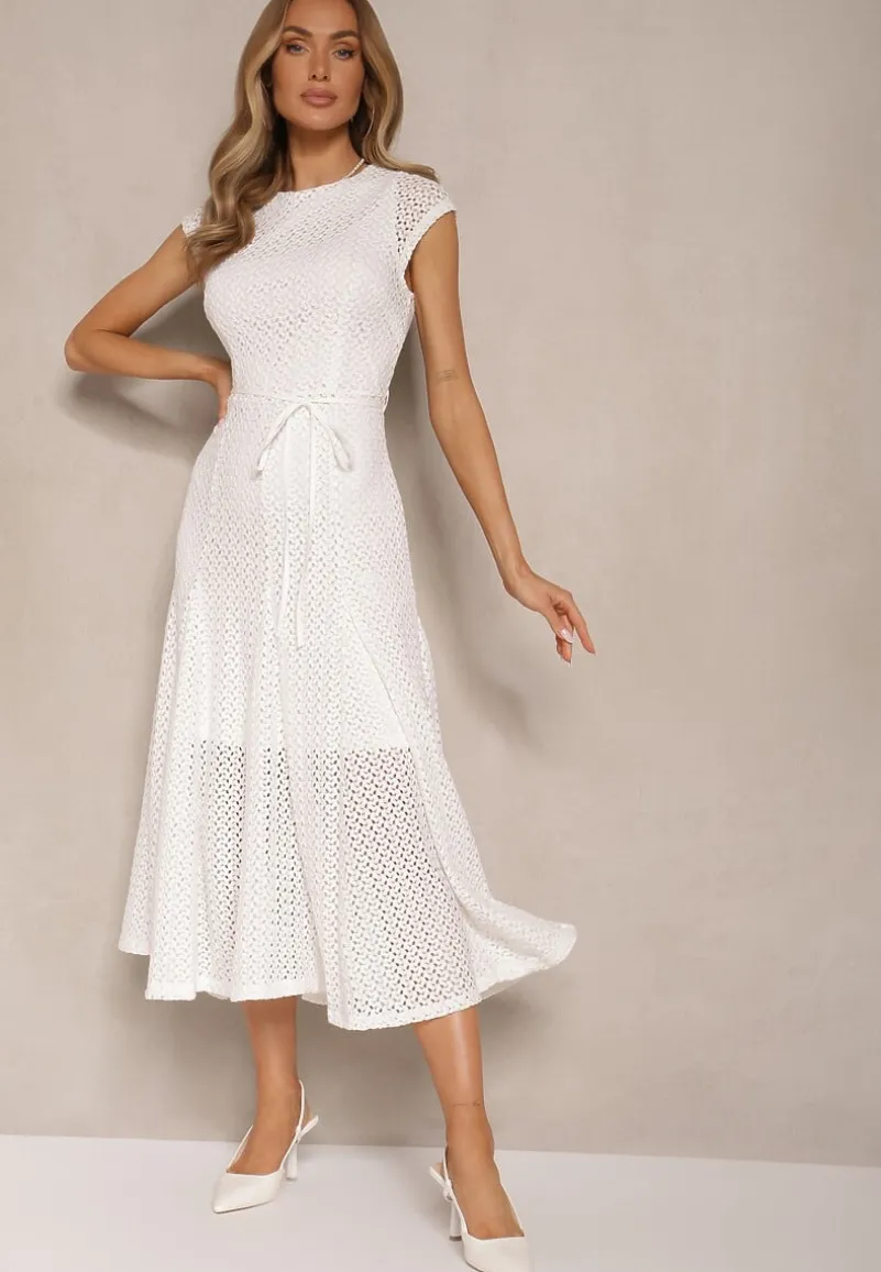 Przygotuj się na sezon pełen stylu z ażurową sukienką Galorena! Jej rozkloszowany krój na suwak z elastyczną podszewką i paskiem idealnie podkreśla sylwetkę. Sukienka jest doskonała na formalne spotkania, gdzie wystarczy założyć szpilki i elegancką biżuterię. Ażurowy wzór oraz materiałowy pasek to perfekcyjne detale, które sprawią, że w każdej sytuacji poczujesz się pewnie i zjawiskowo!
