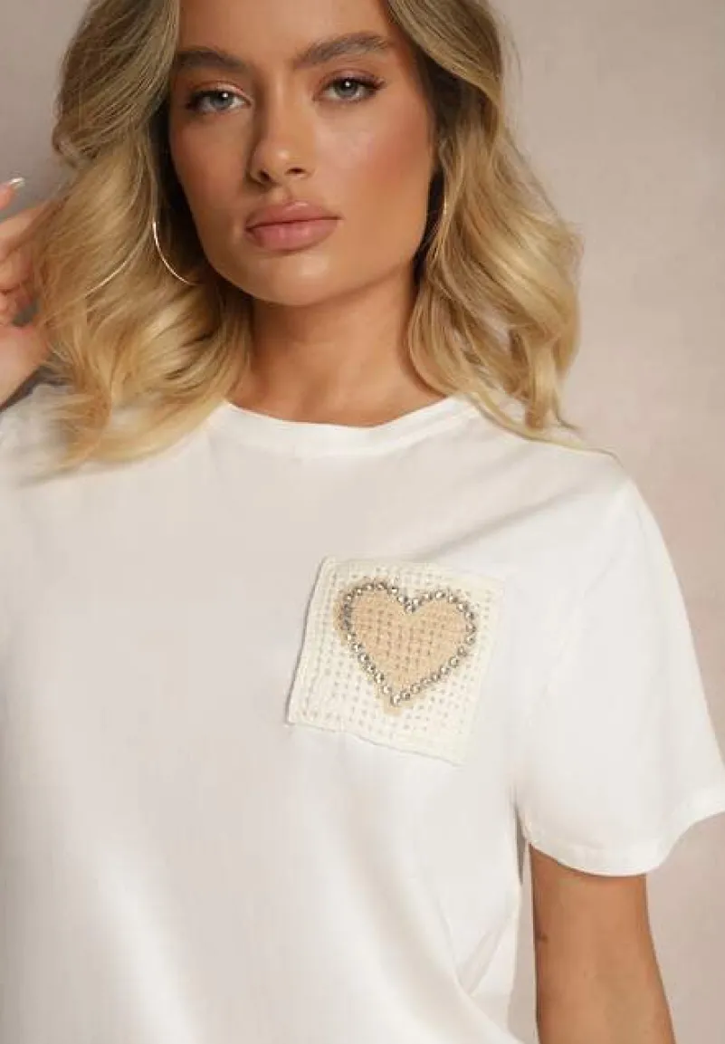 Bluzka Marionella to klasyk w nowoczesnym wydaniu, który świetnie sprawdzi się na różne okazje. Wykonana z bawełny podkreśla sylwetkę. Ozdobione cyrkoniami serce dodaje romantyzmu i subtelności. Stylizuj ją na co dzień z jeansami i trampkami lub na wieczorne wyjście – z elegancką spódnicą i biżuterią. Krótki rękaw, okrągły dekolt i lekko dopasowany krój sprawiają, że to idealny wybór na sezon wiosna-lato.