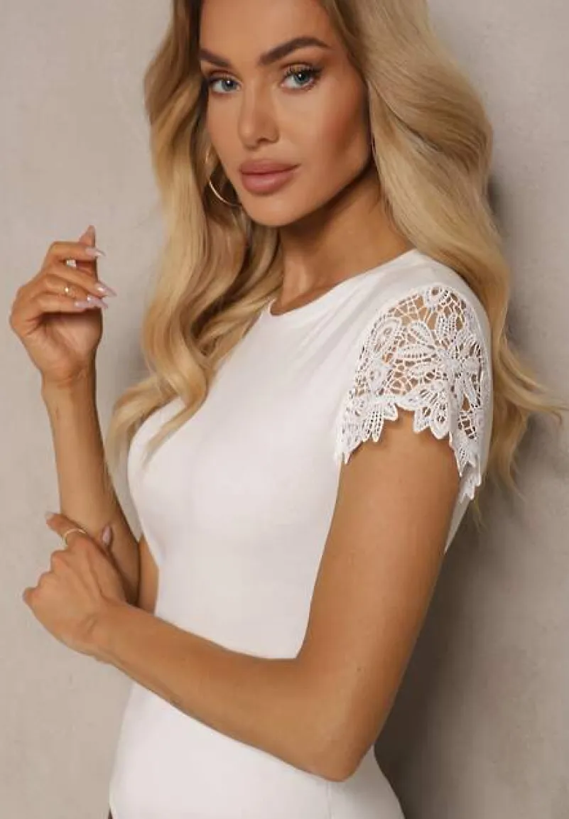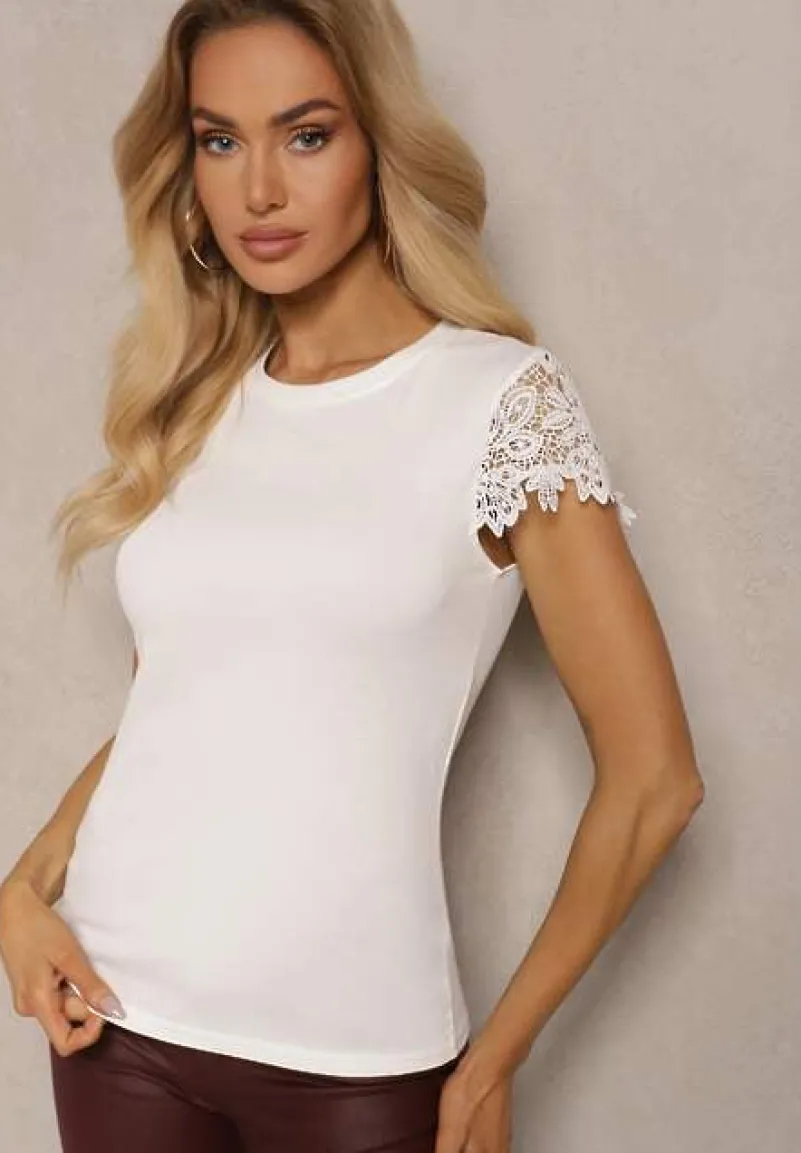 Bluzka Ellionna z ozdobnymi rękawami z koronki. Wykonana z bawełnianego, gładkiego materiału. Świetnie sprawdzi się w codziennych stylizacjach.