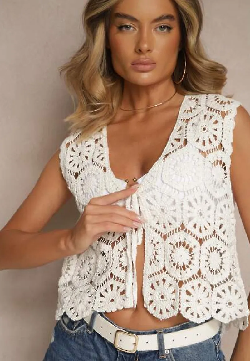 Odkryj wyjątkową Bawełnianą Kamizelkę o Szydełkowym Splocie z Wiązaniem Folidea! Idealna na każdą okazję, od casualowych spotkań ze znajomymi aż po wieczorne wyjścia, ta kamizelka łączy w sobie elegancję i swobodę. Jej unikalny wzór oraz delikatne zdobienia przyciągają wzrok i dodają każdej stylizacji wyjątkowego charakteru. Połącz ją z prostą bluzką i jeansami na co dzień lub z elegancką sukienką i szpilkami na specjalne okazje — efekt wow gwarantowany!