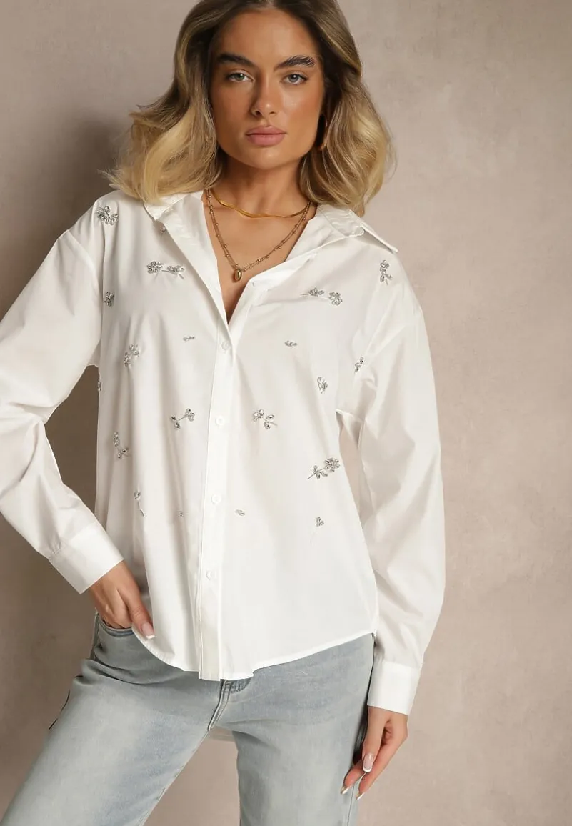 Odkryj urok bawełnianej koszuli Katirina, która łączy w sobie elegancję z modnym sznytem! Jej luźny fason na guziki i długi rękaw na guziki sprawiają, że jest idealna zarówno na codzienne wyjścia, jak i bardziej formalne spotkania. Kołnierzyk z subtelnym dekoltem dodaje kobiecości, a ozdobne naszywki przyciągają wzrok i podkreślają indywidualny styl. Stylizuj ją z jeansami i sneakersami na dzień, a wieczorem zamień na skórzaną spódnicę i szpilki – ta koszula to must-have!