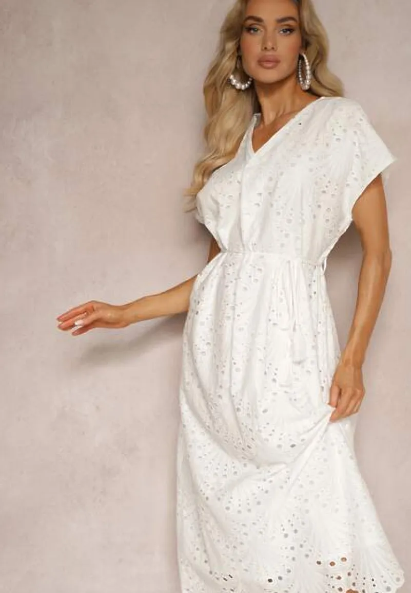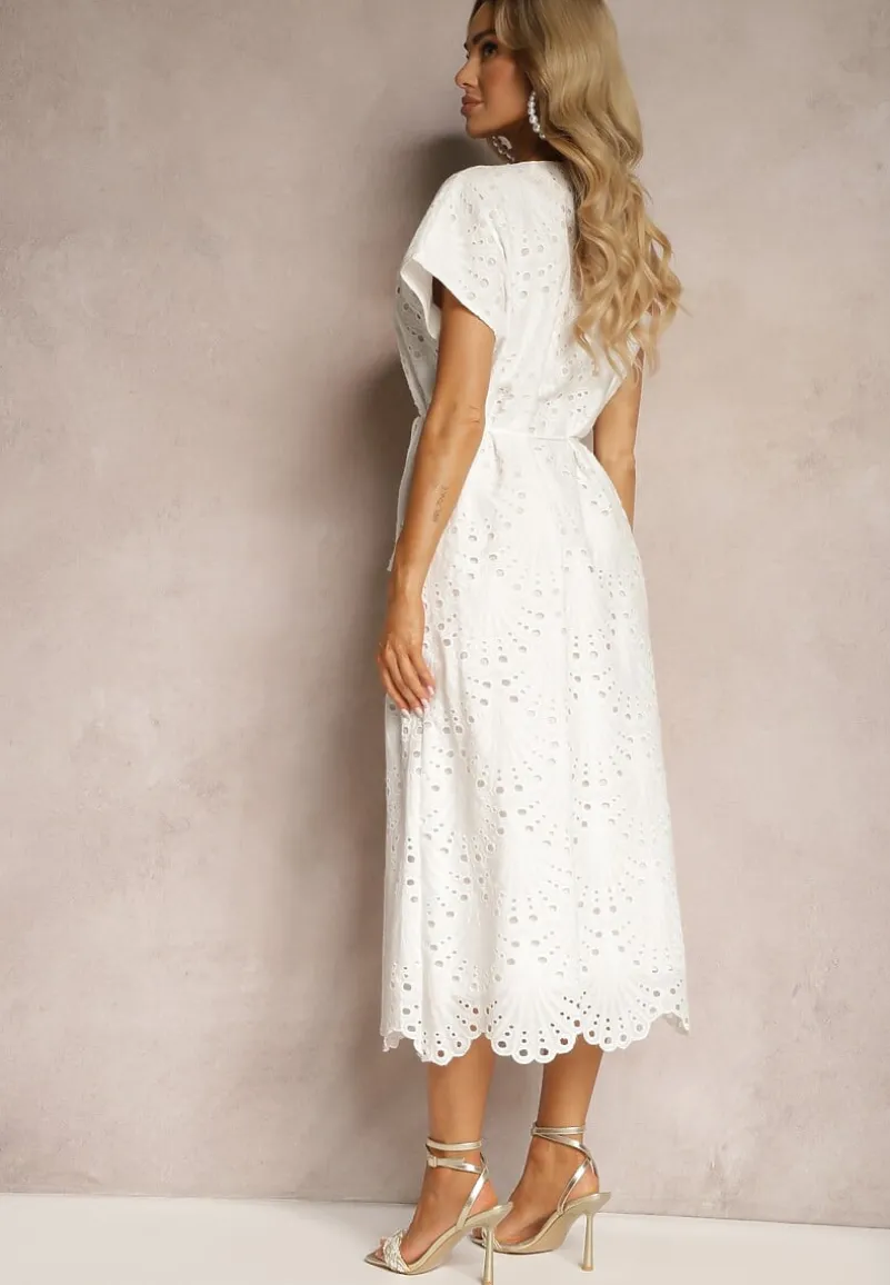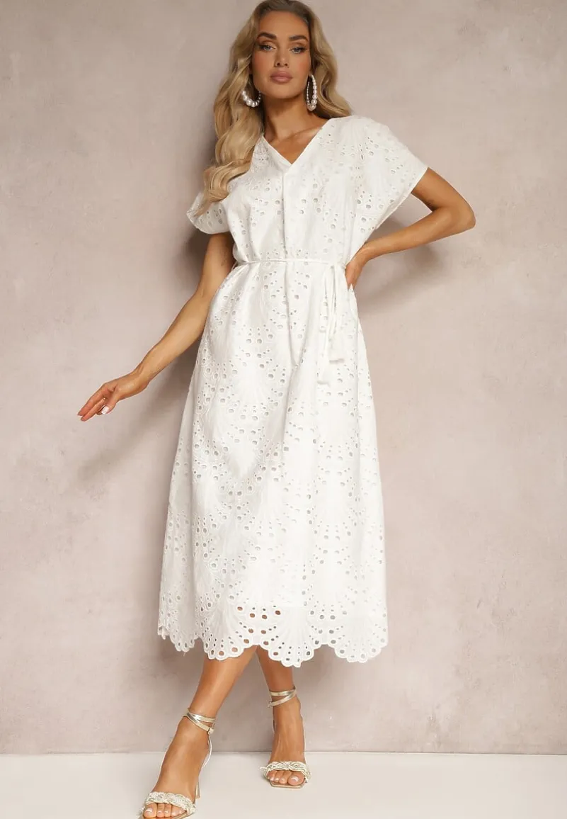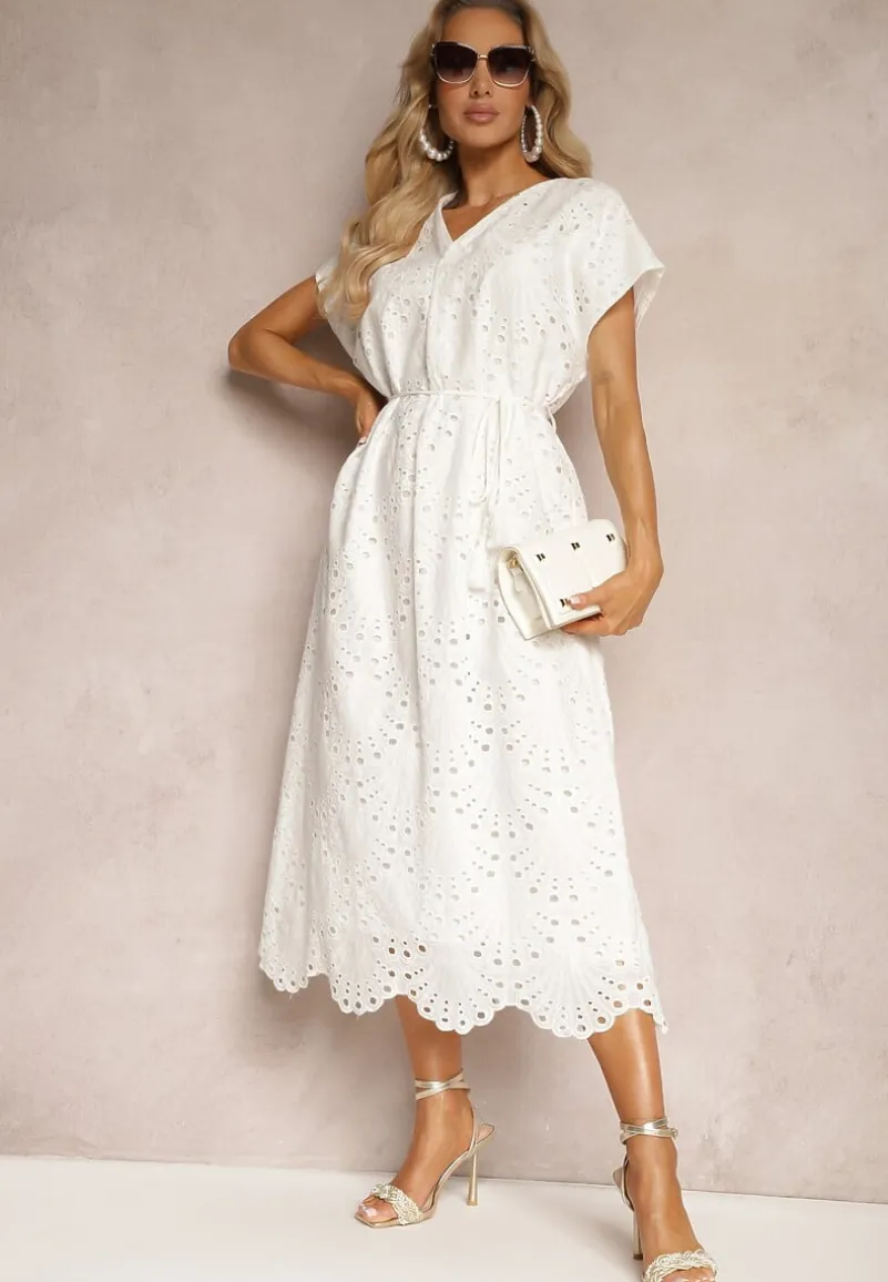 Świeża i zwiewna bawełniana sukienka Dimla z haftowanym wykończeniem i podszewką dodaje uroku na każdej figurze, podkreślając kobiecy kształt. V-kształtny dekolt o odpowiedniej głębokości przyozdobiony delikatnym haftem fantastycznie eksponuje szyję i ramiona, a krótkie rękawy sprawiają, że sukienka idealnie nadaje się na cieplejsze dni. Materiałowy pasek podkreśla talię, wydobywając atuty sylwetki.