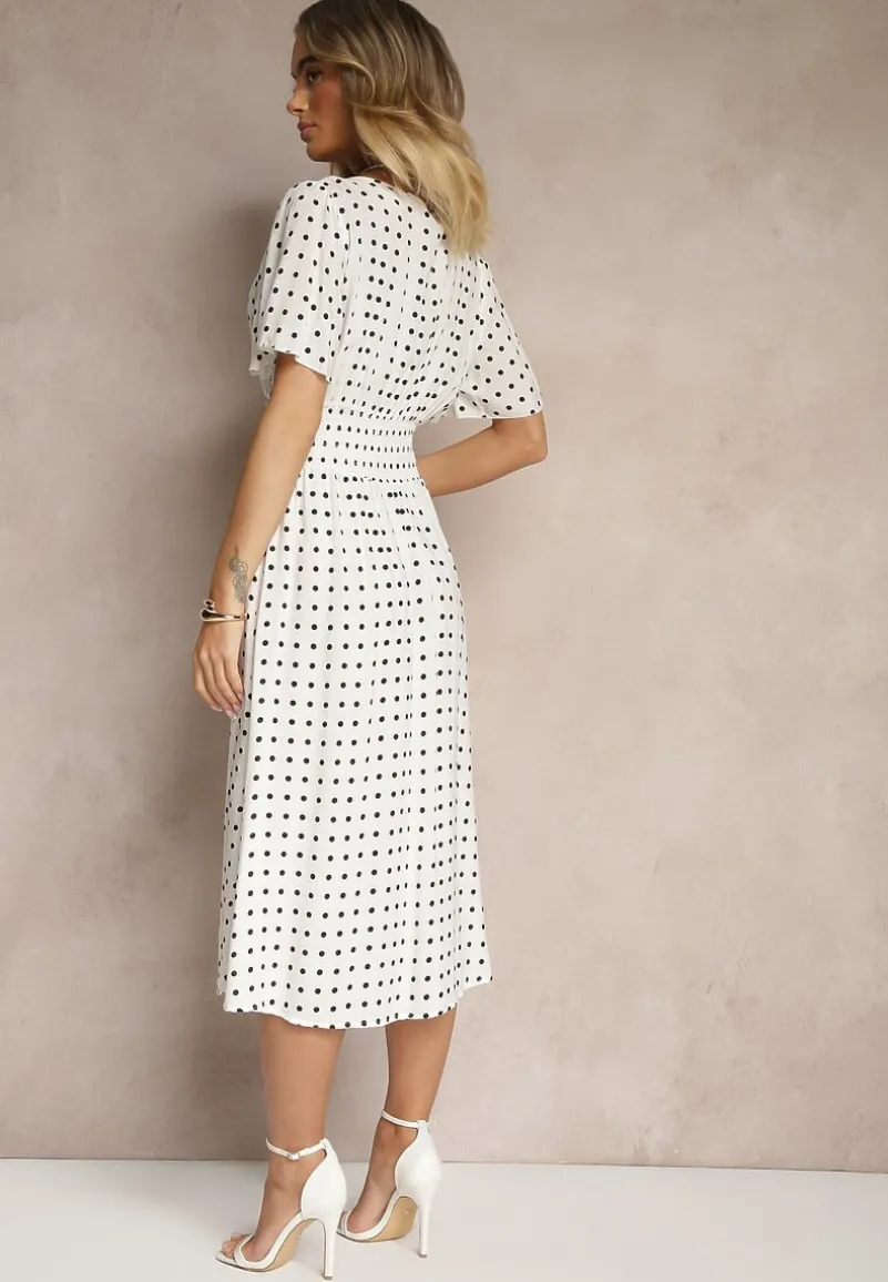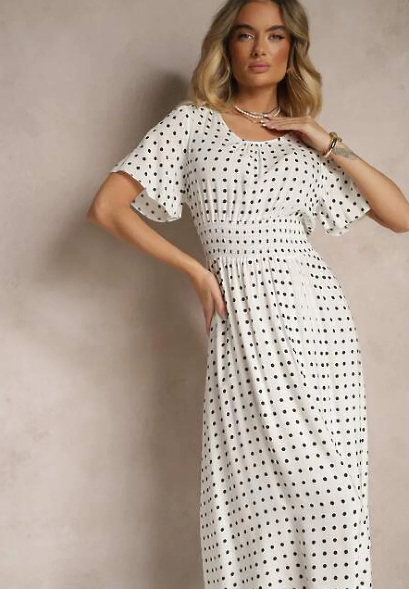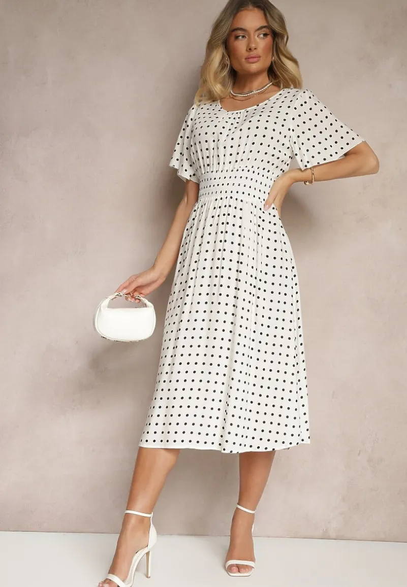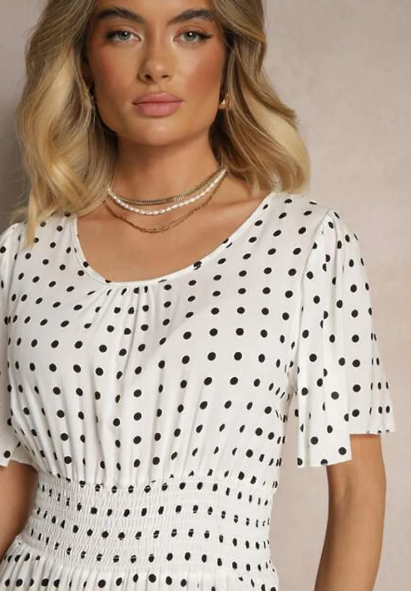 Odkryj urok Bawełnianej Sukienki o Rozkloszowanym Fasonie w Kropki Tolimirae, która łączy w sobie klasykę z nowoczesnym stylem. Jej delikatny dekolt i krótki rękawek sprawiają, że jest idealna na letnie dni, a rozkloszowany krój podkreśli Twoją sylwetkę, dodając lekkości i kobiecości. Wzór w kropki oraz subtelne zdobienia nadają jej unikalnego charakteru, dzięki czemu doskonale sprawdzi się zarówno na co dzień, jak i na wieczorne wyjścia. Posiada cienkie gumki w pasie.