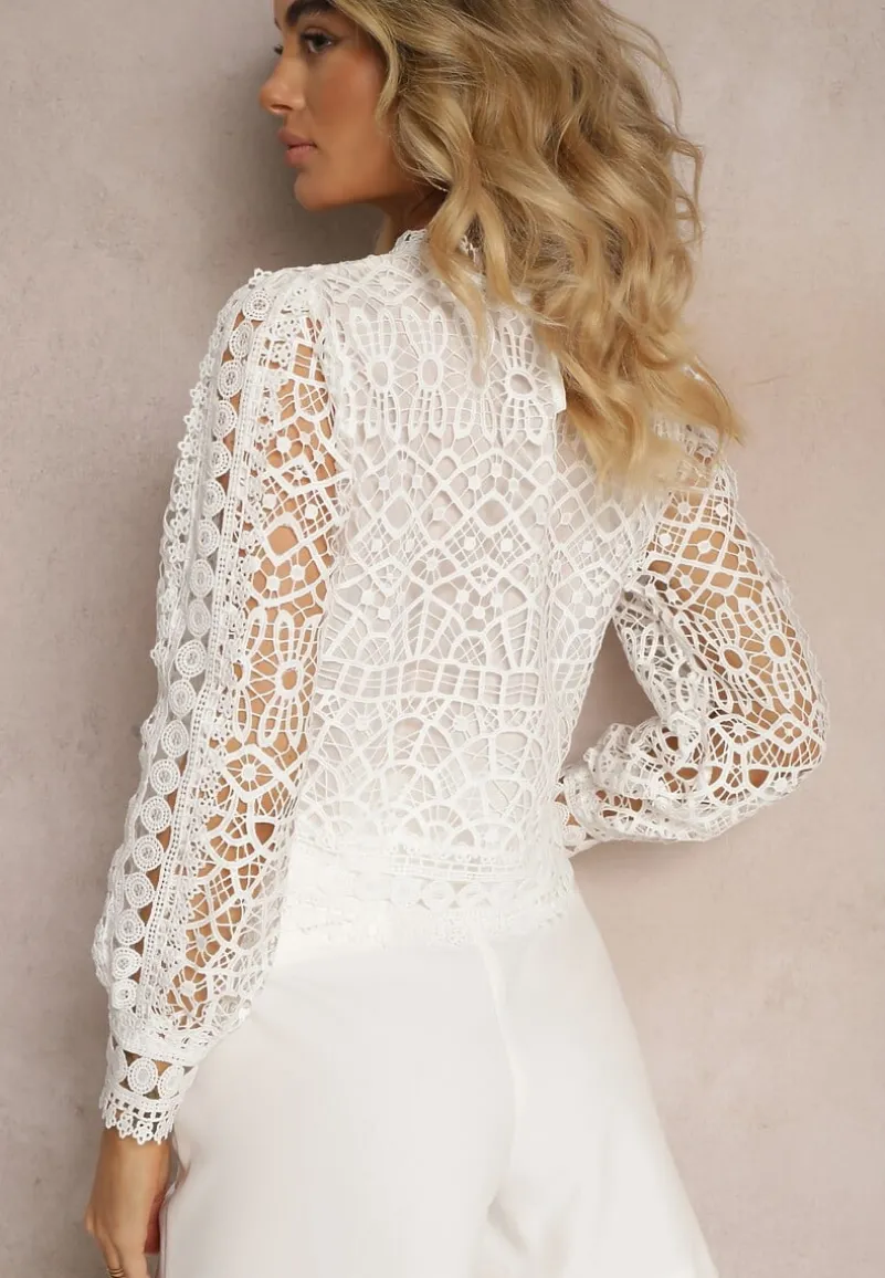 Bluzka Nohames wykonana z koronkowej tkaniny z wszytą podszewką. Wygodnie zapinana na guzik przy karku. Urzeka kobiecym designem!
