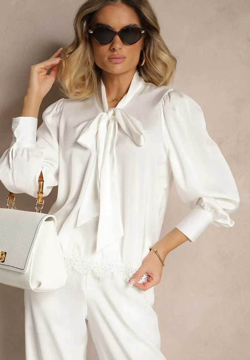 Przygotuj się na to, by zwrócić na siebie uwagę! Bluzka Haliritia, z wiązaniem przy dekolcie i delikatną ażurową koronką na dole, to Must-Have każdej modnej kobiety. Jej swobodny fason i długi rękaw doskonale sprawdzą się zarówno na co dzień, jak i na bardziej formalne okazje — zestaw ją z ołówkową spódnicą i szpilkami, a stworzysz elegancki look, który zachwyci wszystkich. Na weekend natomiast, połącz ją z ulubionymi jeansami oraz sneakersami, by utrzymać wygodny, a jednocześnie stylowy wygląd!