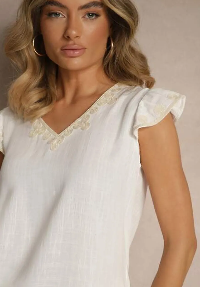 Bluzka z Bawełny Ozdobiona Haftem Savoreia to stylowy wybór dla każdej modnej kobiety. Krój z romantycznym haftem, który dodaje jej wyjątkowego charakteru. Ta bluzka sprawdzi się zarówno na co dzień, w połączeniu z jeansami i sneakersami, jak i na bardziej formalne okazje, zestawiona z elegancką spódnicą i szpilkami. Wykonana z bawełny.