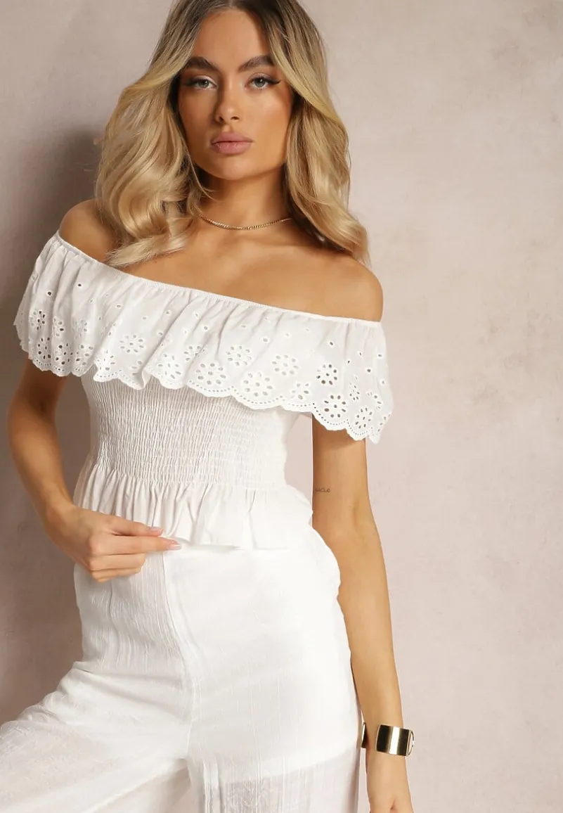 Dołącz do grona wyjątkowych kobiet, które wiedzą jak wyglądać olśniewająco każdego dnia z bluzką Urulla z bawełny. Jej romantyczny styl hiszpanki z ażurową falbanką podkreśli twoją kobiecość, a elastyczna gumka zapewnią idealne dopasowanie. Bluzka będzie doskonała zarówno na codzienne, jak i bardziej uroczyste okazje – wyglądaj stylowo, łącząc ją z ulubionymi jeansami lub elegancką spódnicą i sandałami na obcasie.