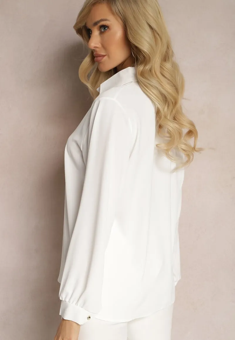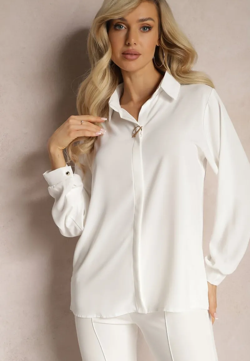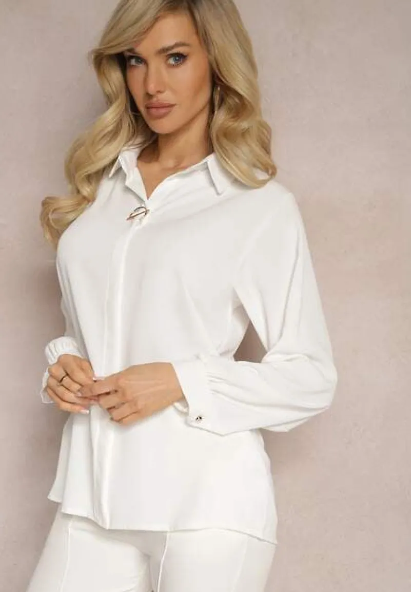 Bluzka Laviona z kołnierzem, dekorowana elegancką broszką z perłą. Z długim rękawem zapinanym na mankiet. Doskonała na wiele okazji!