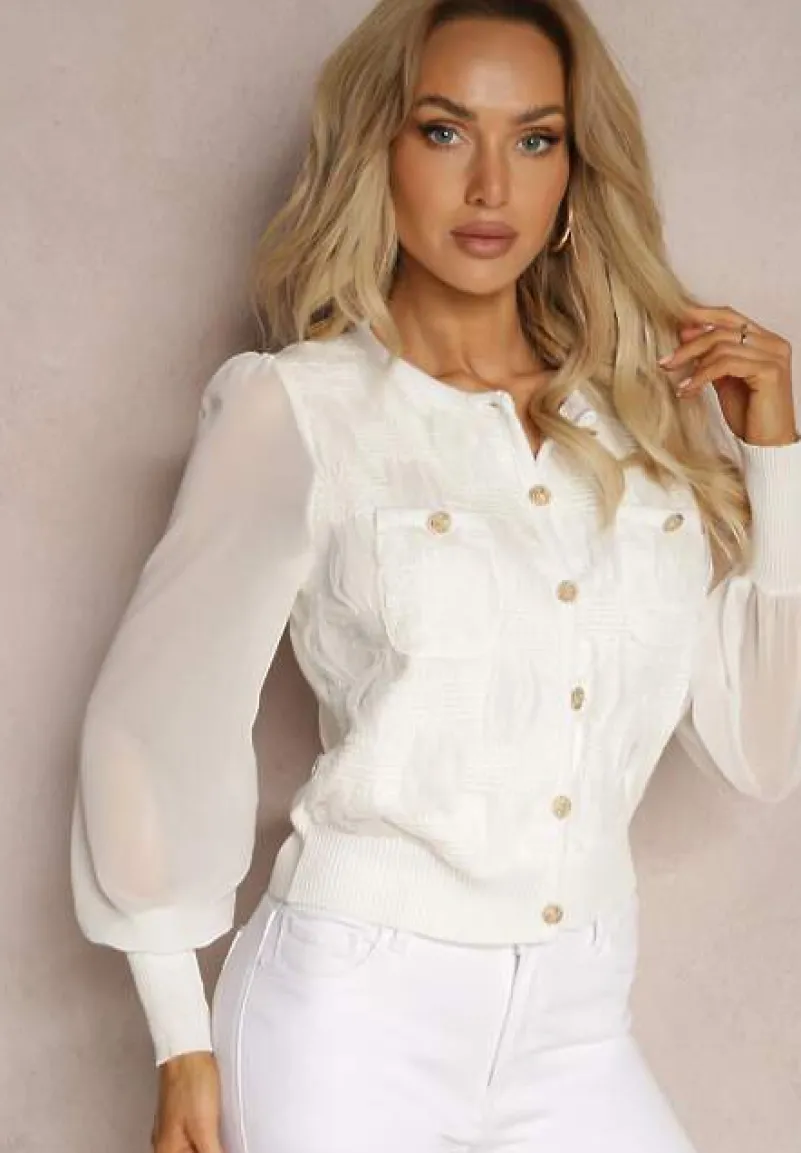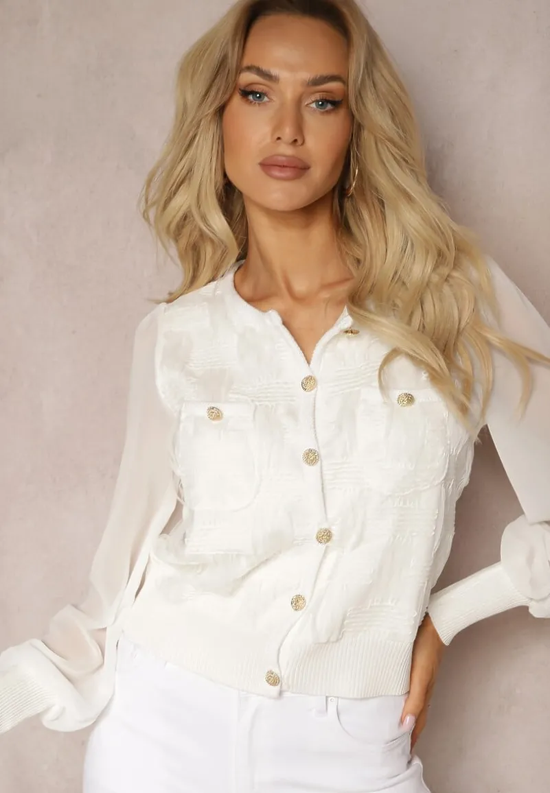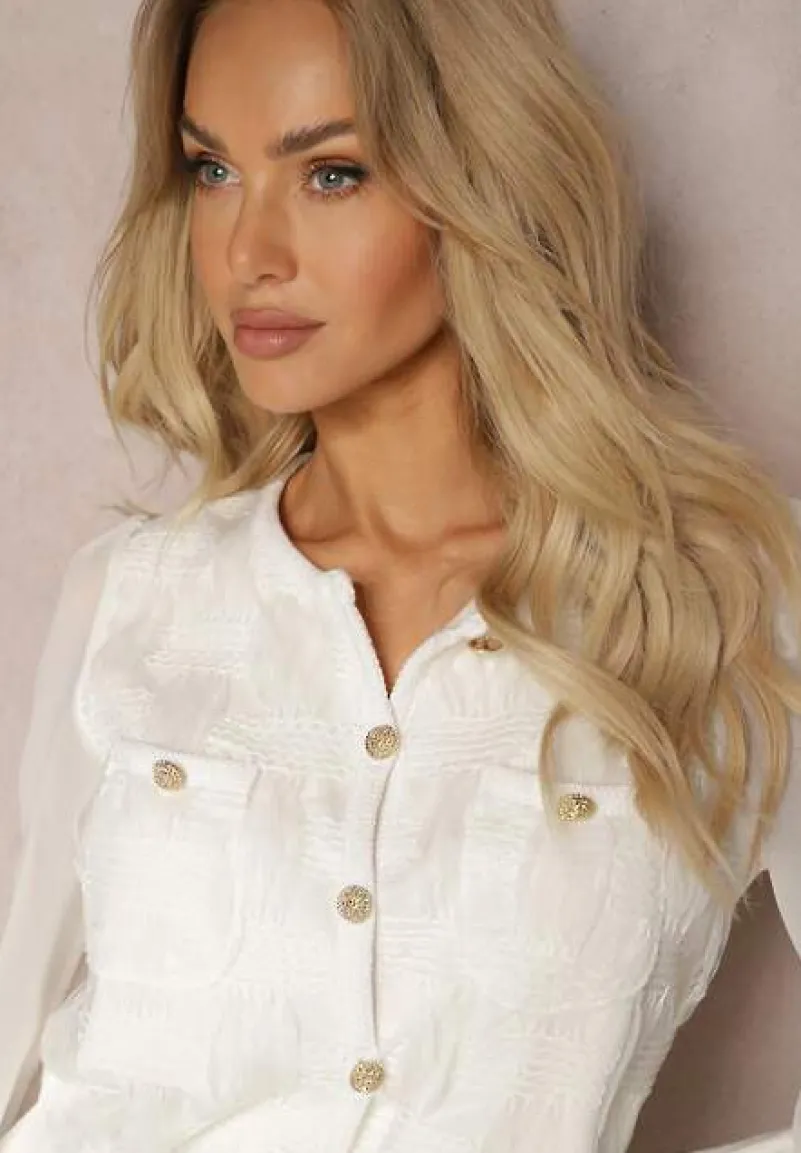 Bluzka Orithya to definicja kobiecości i stylu. Jej delikatny fason z doskonale wyważoną linią dekoltu subtelnie eksponuje szyję, dodając gracji Twoim stylizacjom. Długość rękawa oraz ozdobne guziki z biżuteryjnym wykończeniem dodają jej elegancji. Ten model jest idealnym wyborem na wydarzenia, które wymagają odrobiny szyku, jak i na codzienne wyjścia, gdzie chcesz poczuć się wyjątkowo. Dopełnij kreacje o asymetryczną spódnicę i botki na obcasie – i bądź gotowa na spotkanie lub lunch z przyjaciółkami.