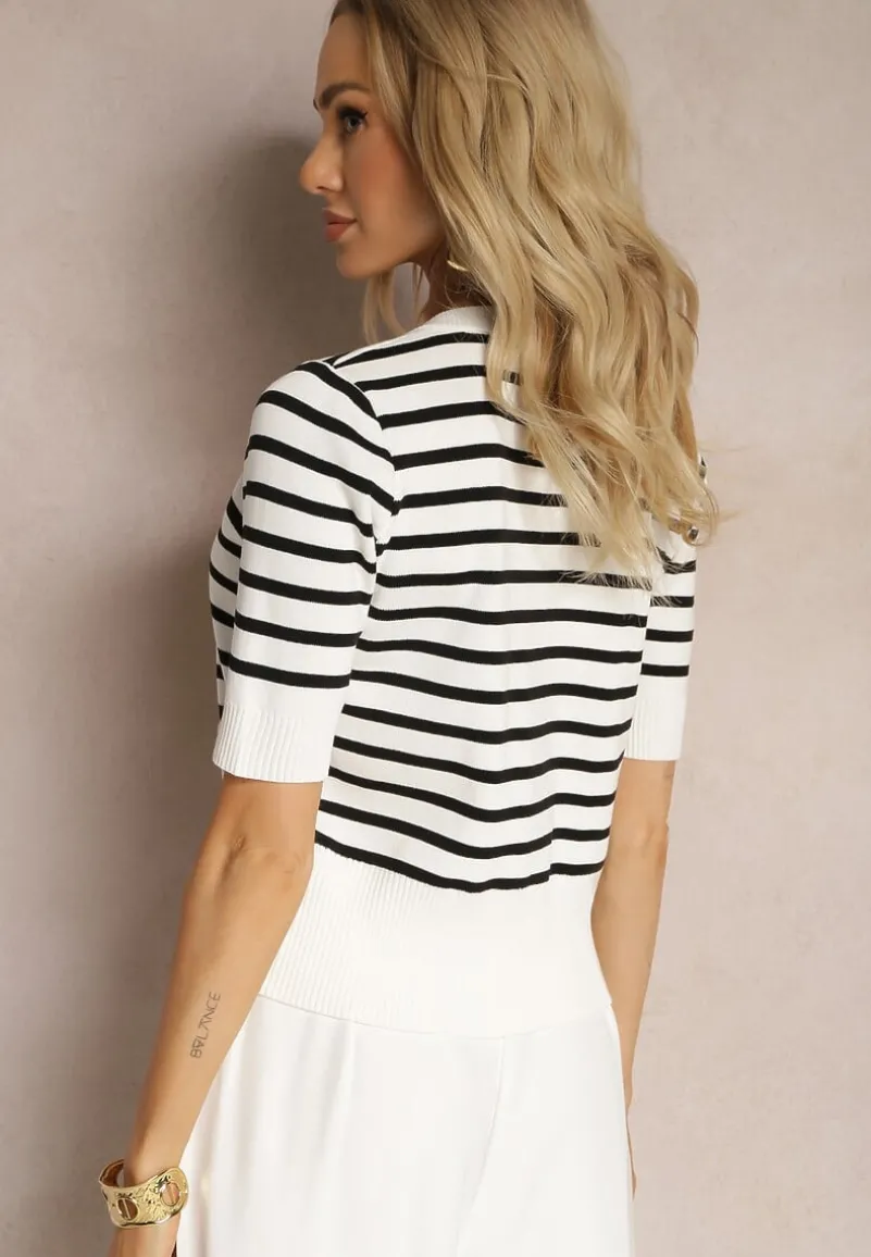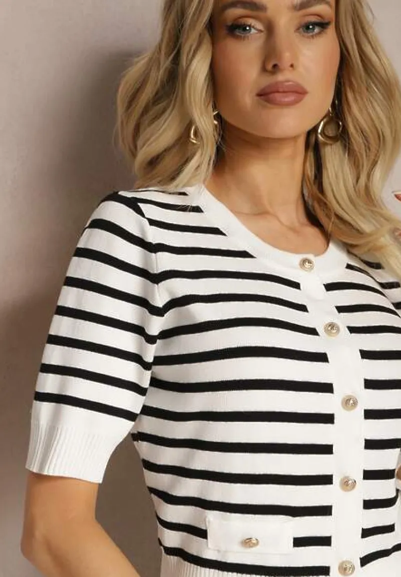 Elegancka bluzka Atomes w paski z dodatkiem biżuteryjnych guzików, idealna do stworzenia klasycznego looku w stylu old money.