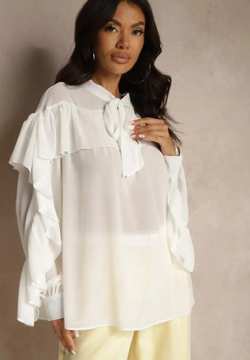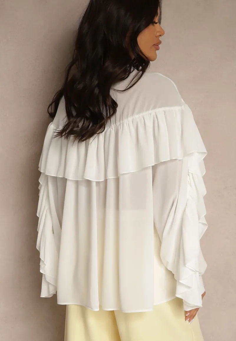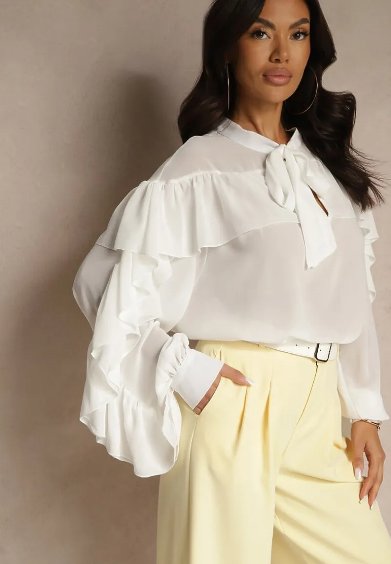 Bluzka z wiskozy z transparentną wstawką, falbanami i wiązaniem Fillenea to idealny wybór dla każdej kobiety, która pragnie połączyć styl z komfortem. Luźny krój i długi rękaw sprawiają, że jest doskonała zarówno na co dzień, jak i na formalne okazje. Zdobienia w postaci falban dodają jej lekkości, a wiązanie przy dekolcie stanowi subtelny akcent, podkreślający sylwetkę. Stylizuj ją z jeansami i botkami na brunch z przyjaciółmi lub zestaw ją ze spódnicą maxi i szpilkami na elegancką kolację — efekt wow gwarantowany!