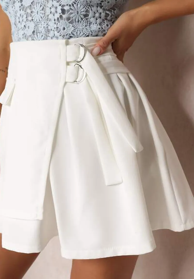Spódnica Eire w stylu cargo o kopertowym kroju z paskami i klapką, która imituje kieszonkę z przodu. Bez podszewki, długość mini, zapinana na ukryty zamek błyskawiczny z tyłu