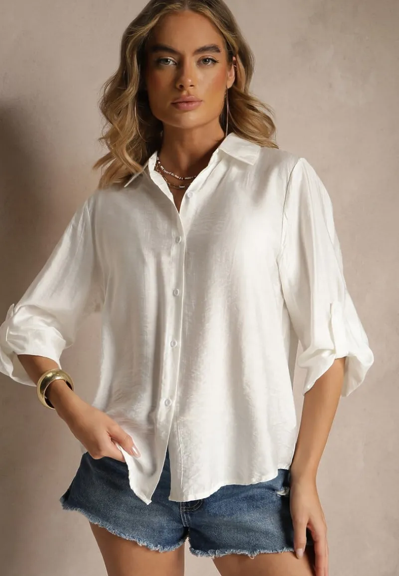 Koszula o Kroju Oversize z Podpinanymi Rękawami Jenitta to doskonały wybór dla każdej modowej entuzjastki, która ceni nowoczesne fasony i ponadczasową klasykę. Dekolt z kołnierzykiem i zapięcie na guziki dodaje szyku, a możliwość podwinięcia i podpięcia rękawów sprawia, że koszula jest niezwykle funkcjonalna. To strzał w dziesiątkę na każdą okazję. Na co dzień postaw na połączenie z jeansami i sneakersami, a na formalne wyjście sięgnij po garniturowe spodnie i eleganckie mokasyny z łańcuszkiem. Musisz ją mieć!