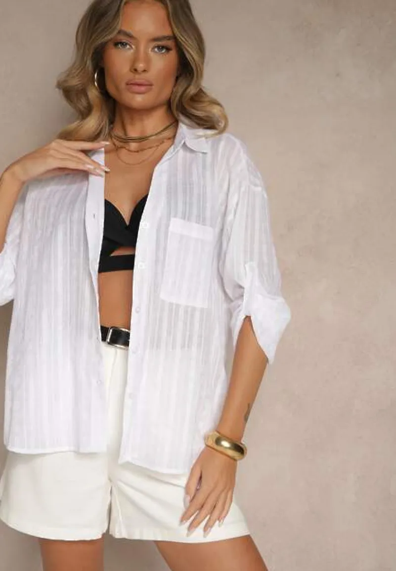 Lekko oversizowa koszula z bawełny Valerita z haftowaną kieszonką i wzorem w kultowe paski. Klasyka, która zawsze będzie modna!