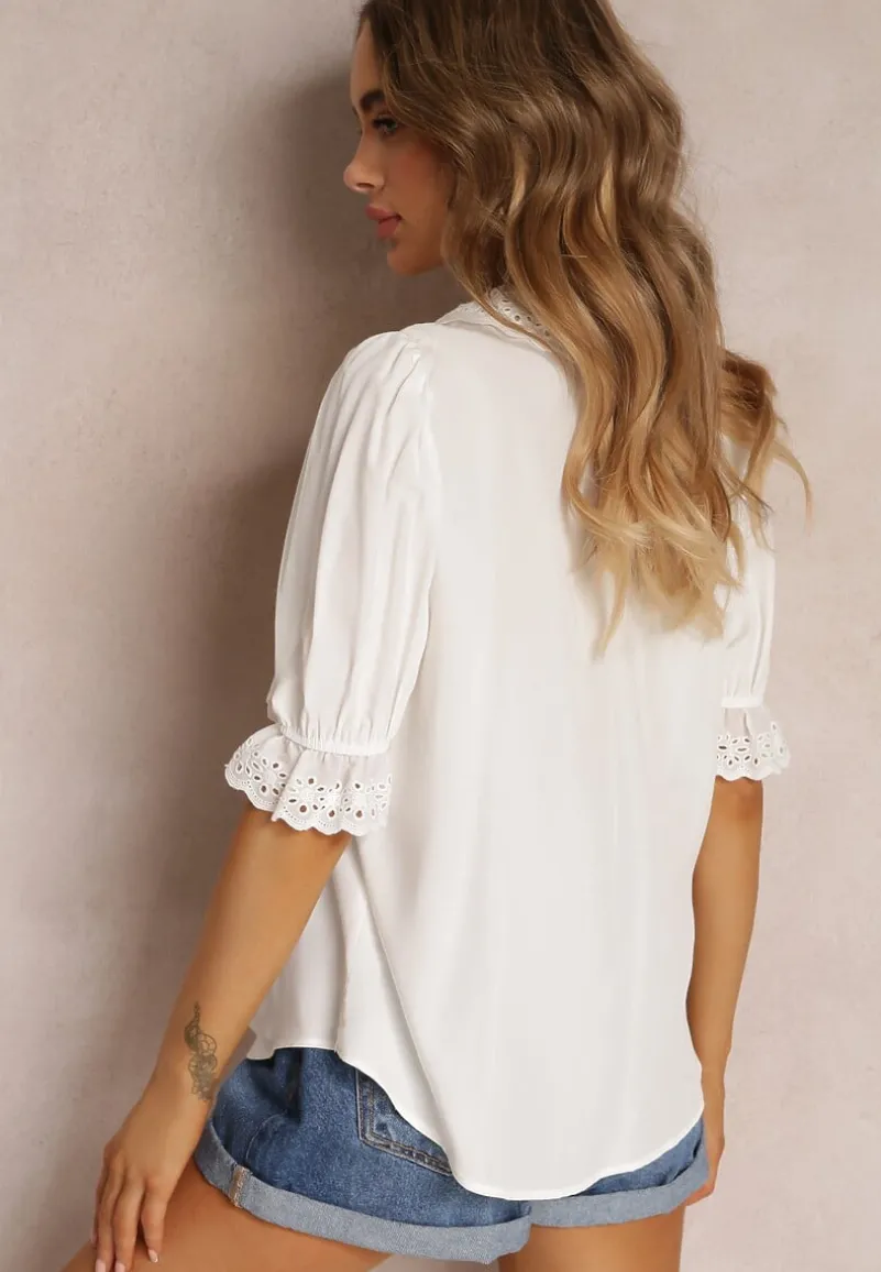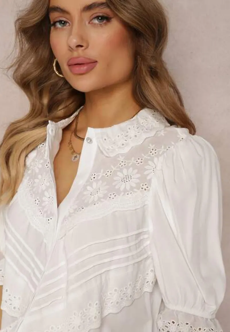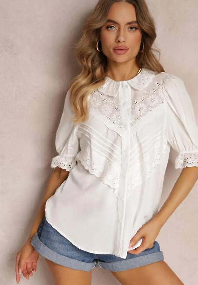 Urocza koszula Prescotta zapinana na guziki. Wyróżnia się haftem na przodzie i na okrągłym kołnierzu. Model z krótkimi, ozdobnymi rękawami z gumką. Doskonała do wielu stylizacji.