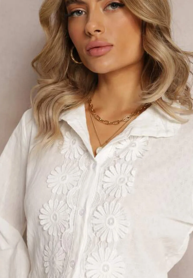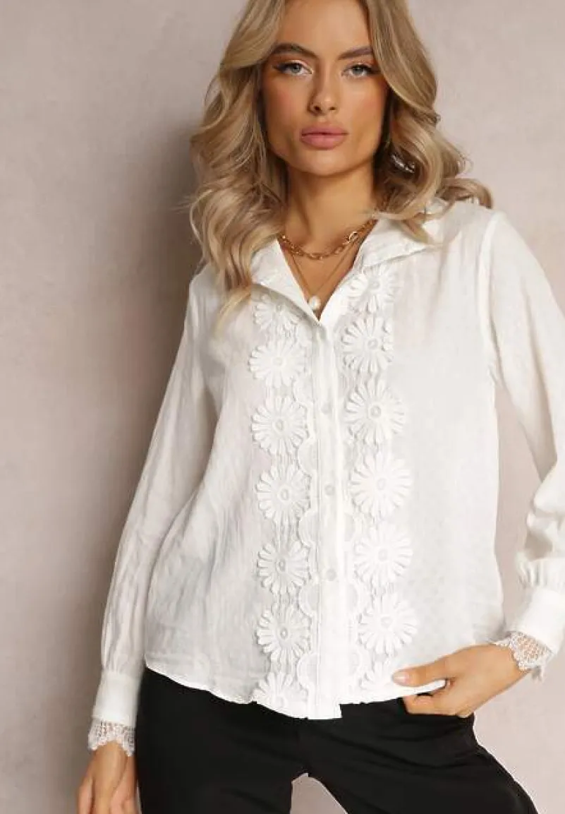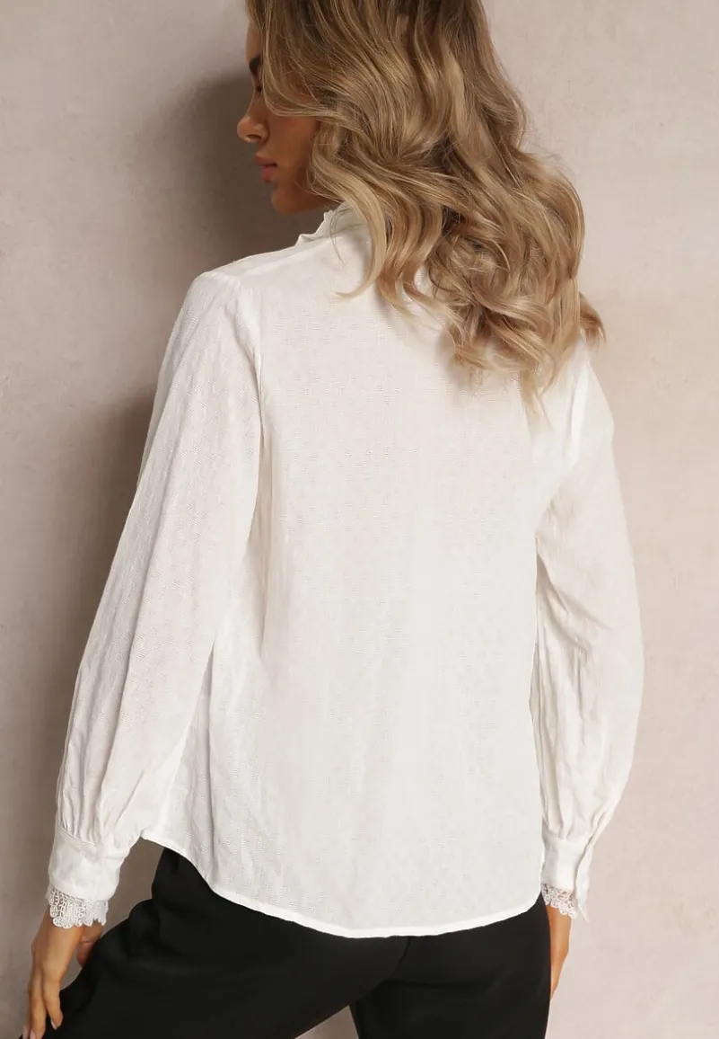 Koszula Ranamas zapinana z przodu na rząd guzików. Długi rękaw na mankiet oraz klasyczny kołnierz wokół szyi. Model dekorowany zachwycającą koronką.