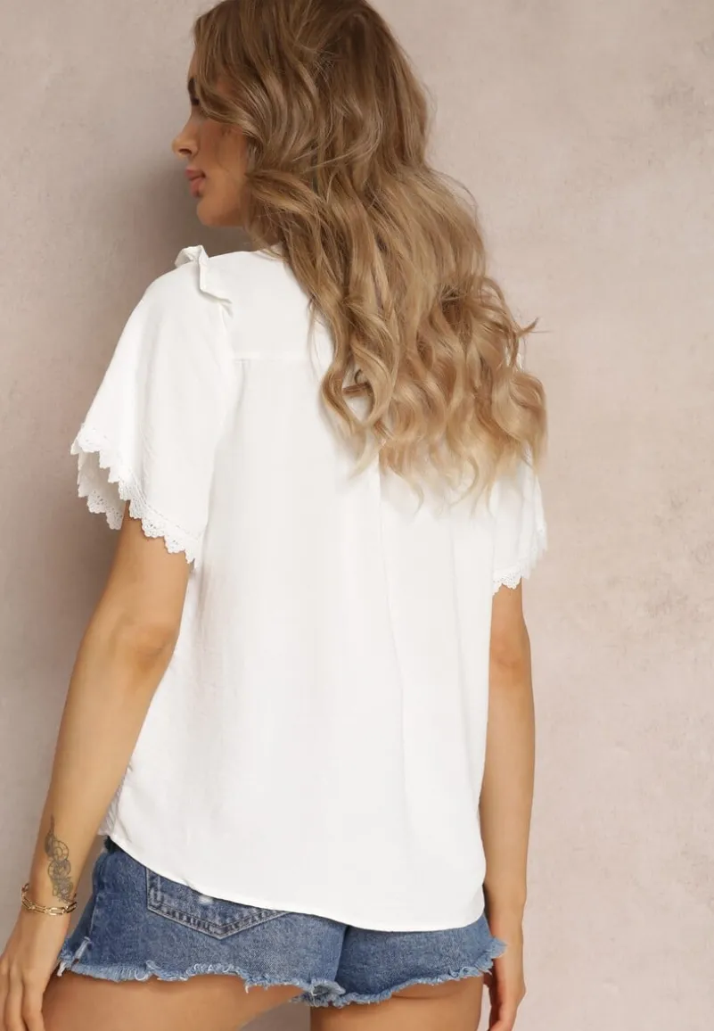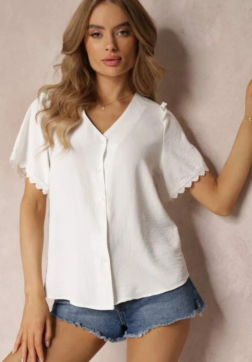 Kobieca Bluzka Bettia zdobiona koronkową wstawką przy ramionach. Zapinana na guziki.