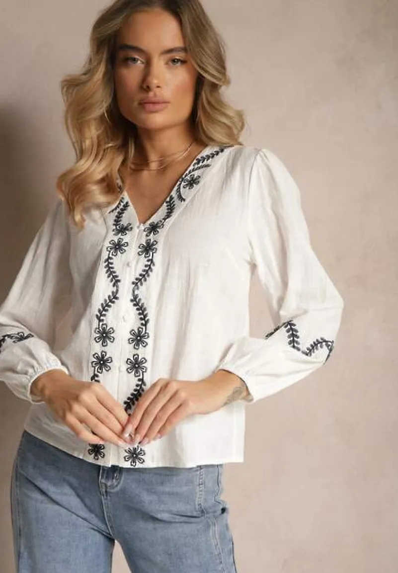 Koszula Gonarrae zapinana na powlekane guziki to idealny wybór dla kobiet śledzących najnowsze trendy w modzie, które cenią jednocześnie wygodę. Luźny krój z długimi rękawami gwarantuje komfort noszenia, a efektowny haft z kwiatowym motywem dodaje unikalności. Dekolt w kształcie litery V subtelnie podkreśla szyję i jest doskonały zarówno na co dzień, jak i na bardziej formalne okazje. Wystylizuj tę koszulę z jeansami i sneakersami na spacer po mieście lub zestaw ją z eleganckimi spodniami i szpilkami na wieczorną kolację. Bez względu na okazję zachwycisz wszystkich stylem i pewnością siebie!