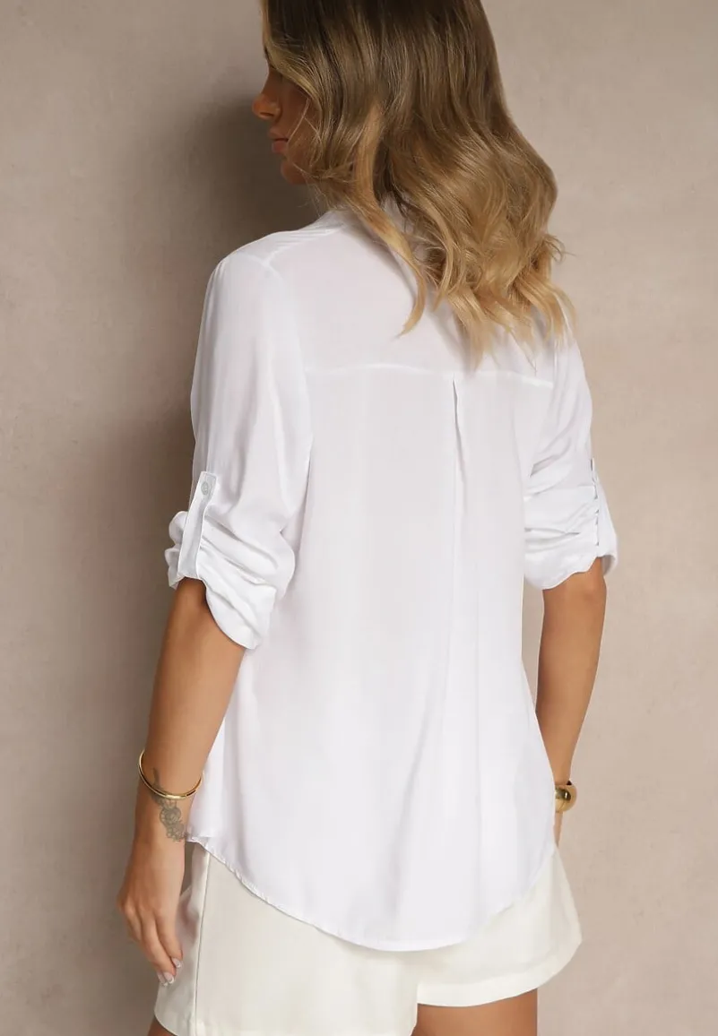 Klasyczna koszula z kołnierzykiem i guzikami. Na wysokości klatki piersiowej wsuwane kieszenie. Długie rękawy można podwinąć i zapiąć na mały guzik. Idealna na co dzień i od święta.