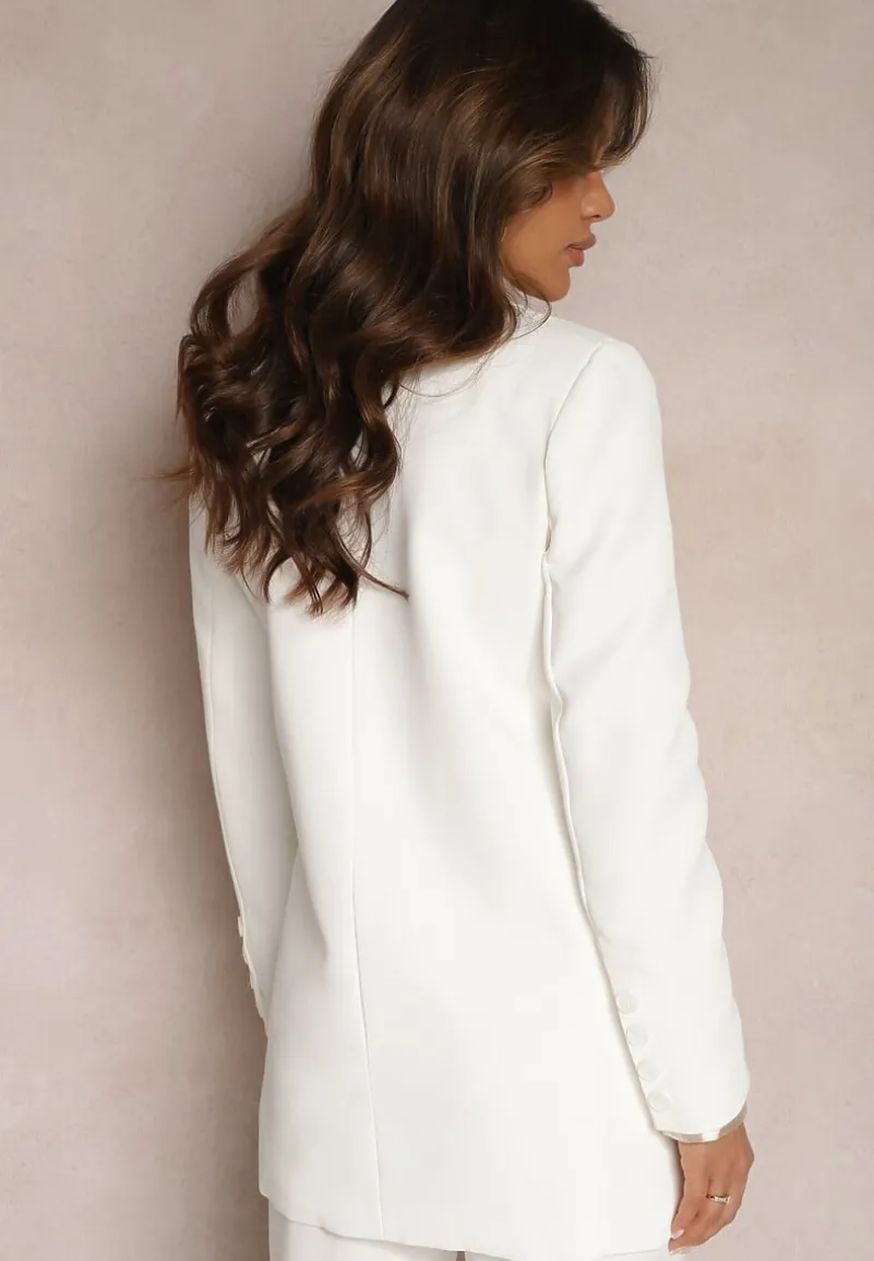 Marynarka Marla z biżuteryjnym zdobieniem na klapach kieszeni z piórek oraz perełek. Modny, dwurzędowy fason z kołnierzem i klapami. Ta marynarka robi wrażenie!